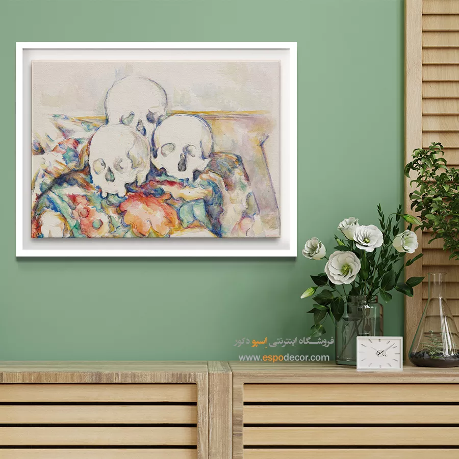 • استفاده از تابلویی با رنگ خنثی در پس‌زمینه: رنگ‌های سفید، خاکستری یا بژ، در حالی که رنگ اصلی دیوار یا رنگ‌های جزئی مبلمان و اکسسوری‌ها در طرح آن تکرار شده باشد. این روش تعادل را در فضا تضمین کرده و از شلوغی بصری جلوگیری می‌کند.