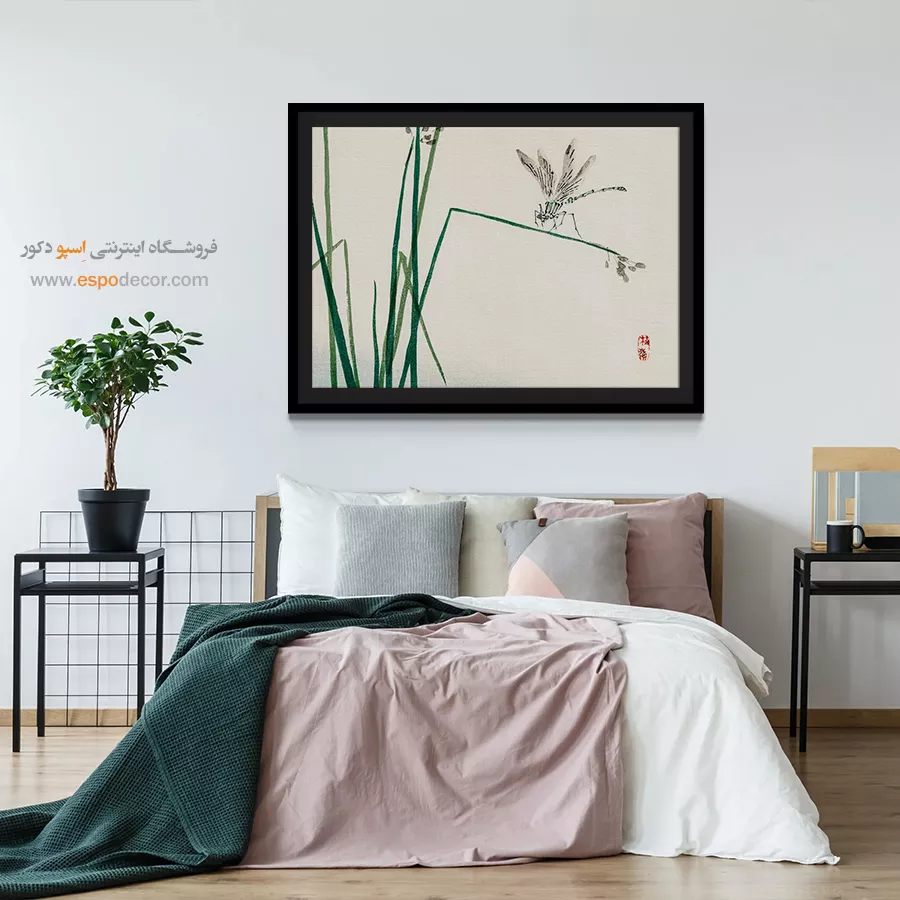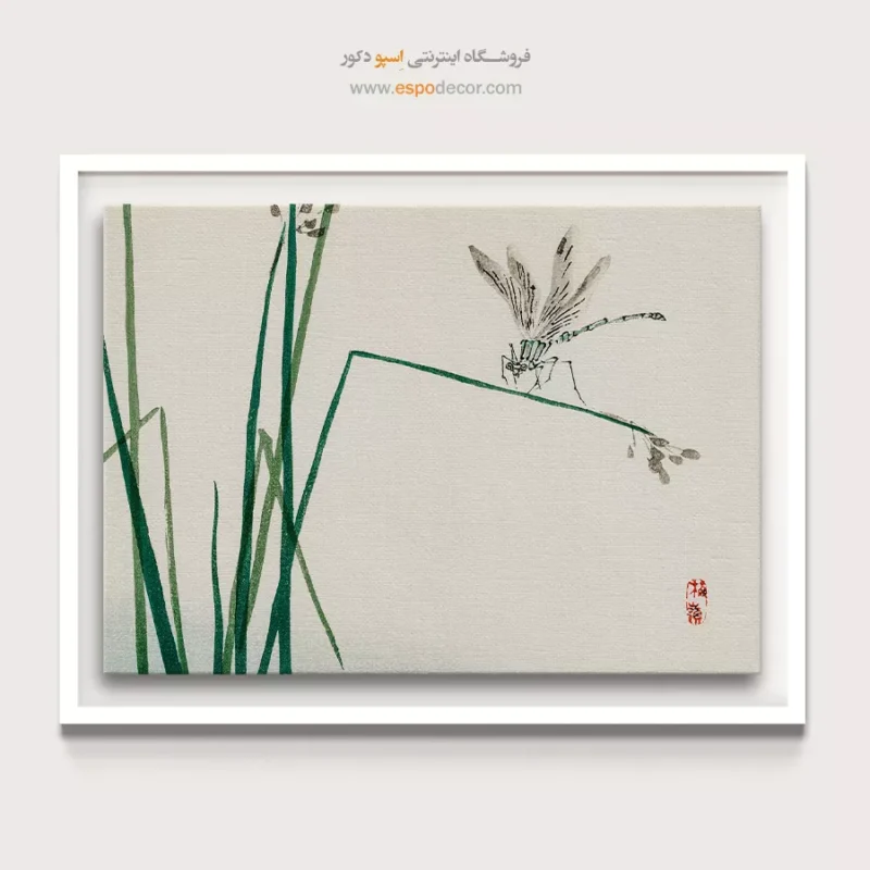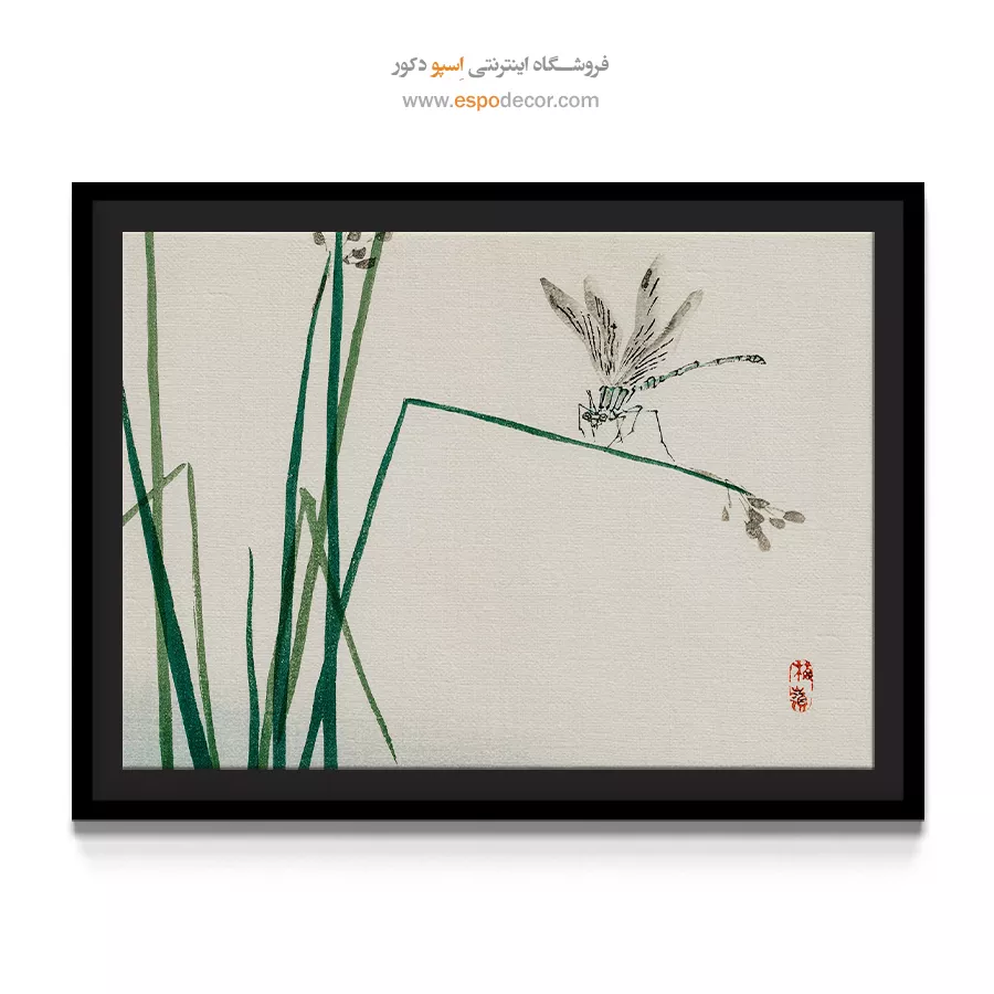 سنجاقک روی برگ بورش – تابلو نقاشی های بایرئی گاکان