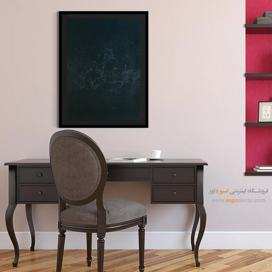 تصویری است که روی کاغذ عکاسی یا متریال صاف چاپ شده و مستقیماً روی یک تخته چوبی صاف (معمولاً MDF یا فیبر) با ضخامت کم پرس میشود و فاقد هرگونه قاب و پوشش شیشهای است. - تابلو قابدار معمولی: