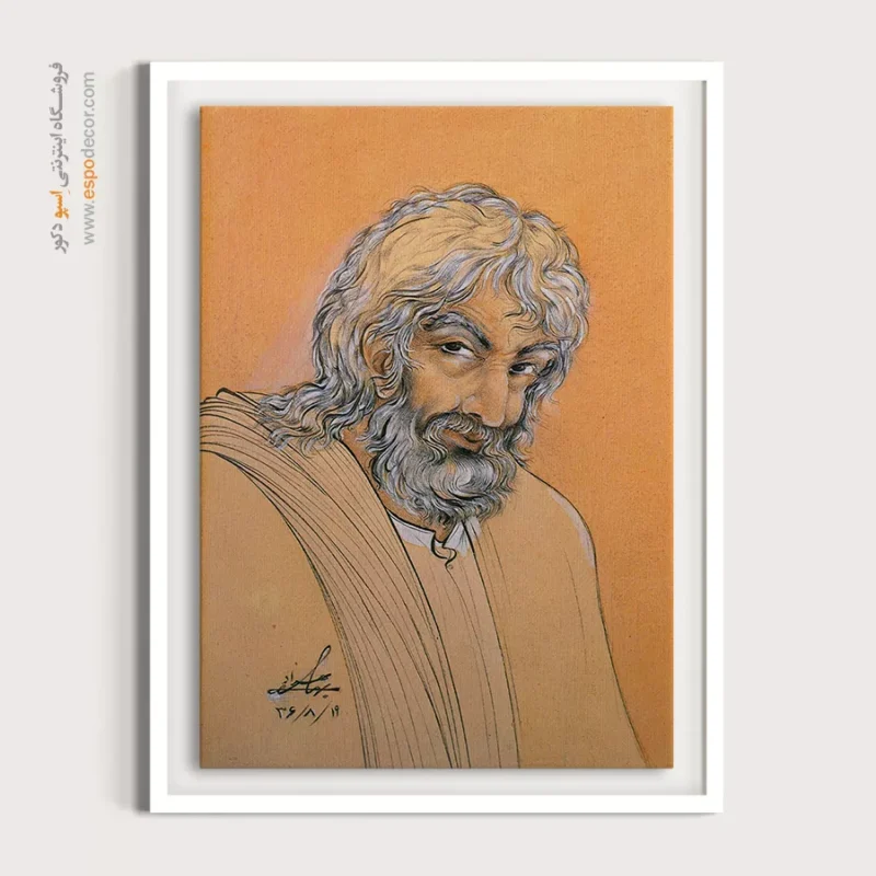 این نقاشی شمس تبریزی، یکی از قدرتمندترین پرتره‌های خلق شده توسط استاد حسین بهزاد است. برخلاف چهره‌های آرام و متین معمول در مینیاتورها، بهزاد در این اثر طوفان درون شمس را به تصویر کشیده است. پس‌زمینه گرم و نارنجی رنگ، نمادی از آتش عشق و شوریدگی است که شمس در جان مولانا برپا کرد.