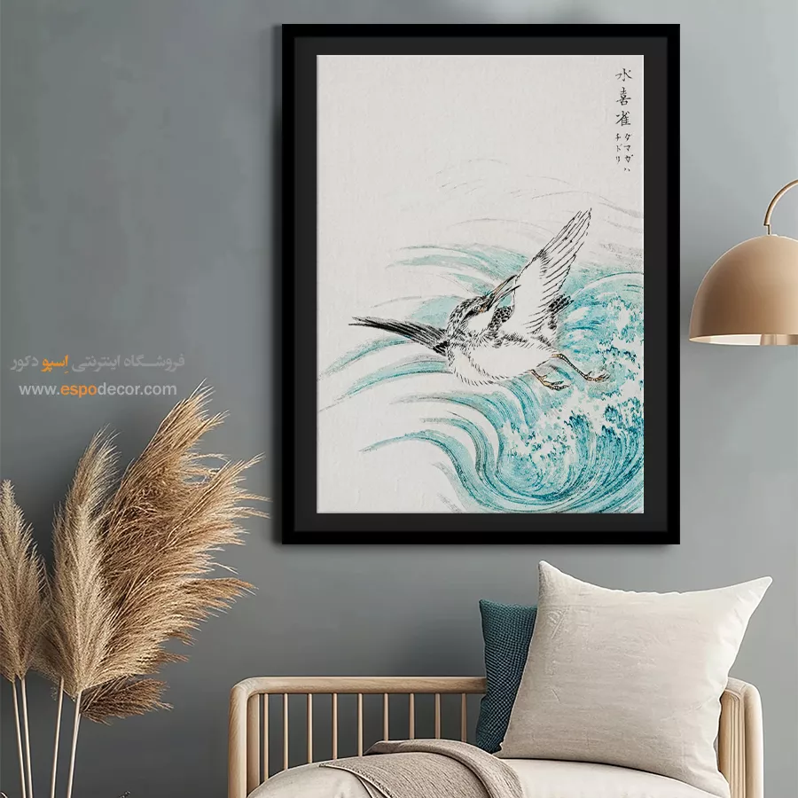 • انتخاب سایه‌های مختلف از رنگ دیوار: مانند تابلو آبی تیره روی دیوار آبی روشن، که حس آرامش و یکپارچگی در فضا ایجاد می‌کند.