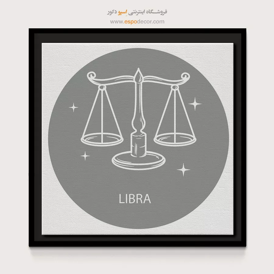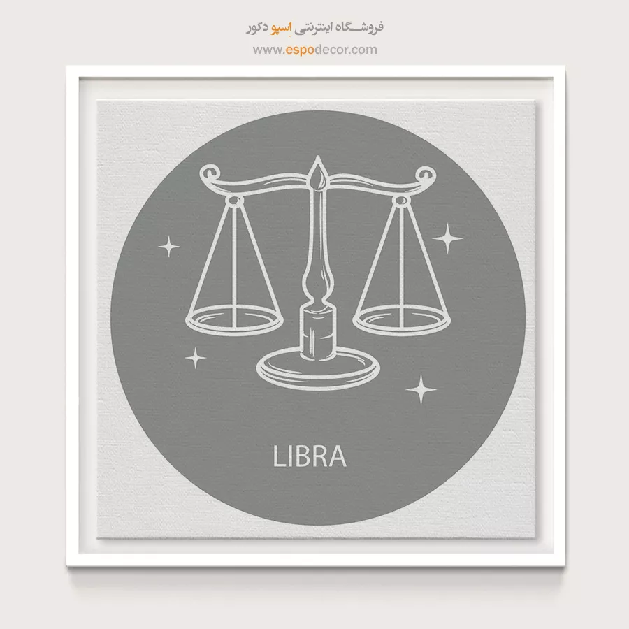 «تابلو ماه تولد مهر با نماد ترازو، سمبل تعادل و زیبایی است. طراحی متقارن و چاپ ممتاز روی بوم، این تابلو را به دکوری شیک و هدیهای متفاوت برای متولدین مهر تبدیل کرده است.»