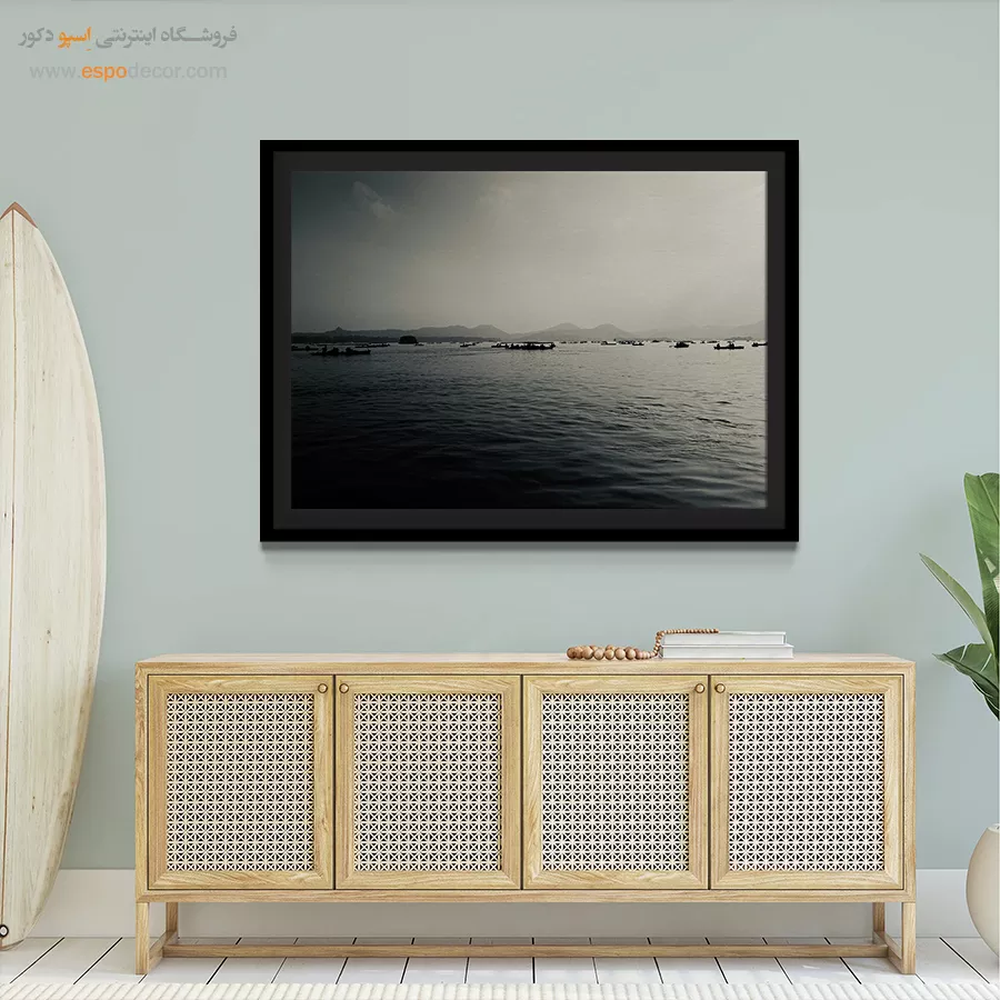 تصویری است که روی کاغذ عکاسی یا متریال صاف چاپ شده و مستقیماً روی یک تخته چوبی صاف (معمولاً MDF یا فیبر) با ضخامت کم پرس میشود و فاقد هرگونه قاب و پوشش شیشهای است. - تابلو قابدار معمولی: