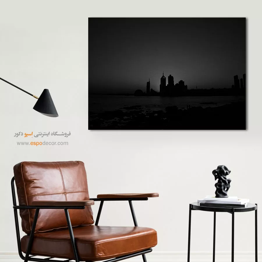 - فضای اداری: تابلو سیاه و سفید با تم معماری، خطوط منظم و سازههای صنعتی (مانند دکلها، پلها یا آسمانخراشها) بهترین انتخاب برای فضای اداری و شرکتهایی است که نیاز به القای حس نظم، حرفهای بودن و تمرکز دارند.