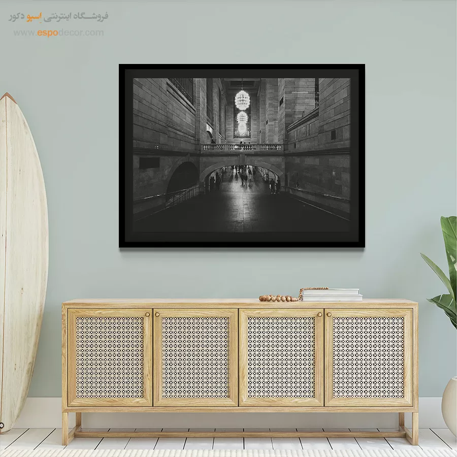 تصویری است که روی کاغذ عکاسی یا متریال صاف چاپ شده و مستقیماً روی یک تخته چوبی صاف (معمولاً MDF یا فیبر) با ضخامت کم پرس میشود و فاقد هرگونه قاب و پوشش شیشهای است. - تابلو قابدار معمولی: