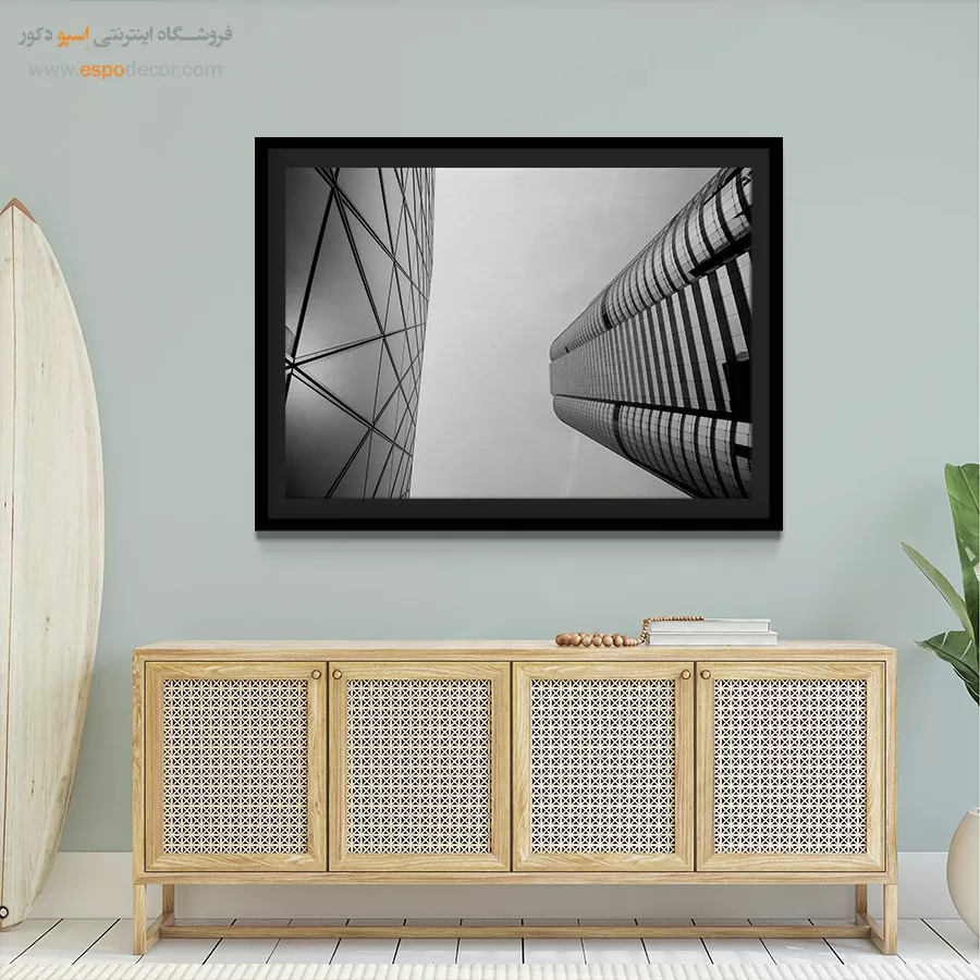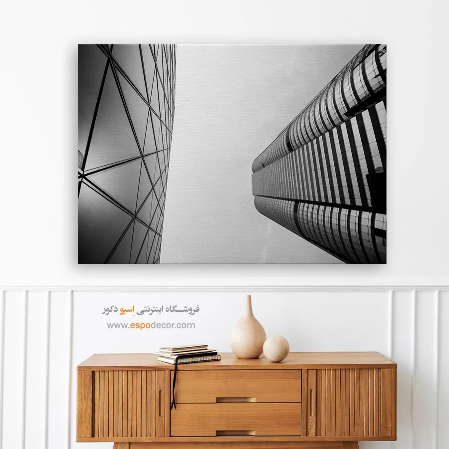 - فضای اداری: تابلو سیاه و سفید با تم معماری، خطوط منظم و سازههای صنعتی (مانند دکلها، پلها یا آسمانخراشها) بهترین انتخاب برای فضای اداری و شرکتهایی است که نیاز به القای حس نظم، حرفهای بودن و تمرکز دارند.