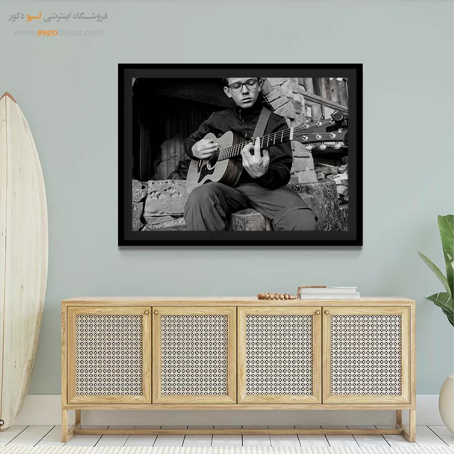 تصویری است که روی کاغذ عکاسی یا متریال صاف چاپ شده و مستقیماً روی یک تخته چوبی صاف (معمولاً MDF یا فیبر) با ضخامت کم پرس میشود و فاقد هرگونه قاب و پوشش شیشهای است. - تابلو قابدار معمولی: