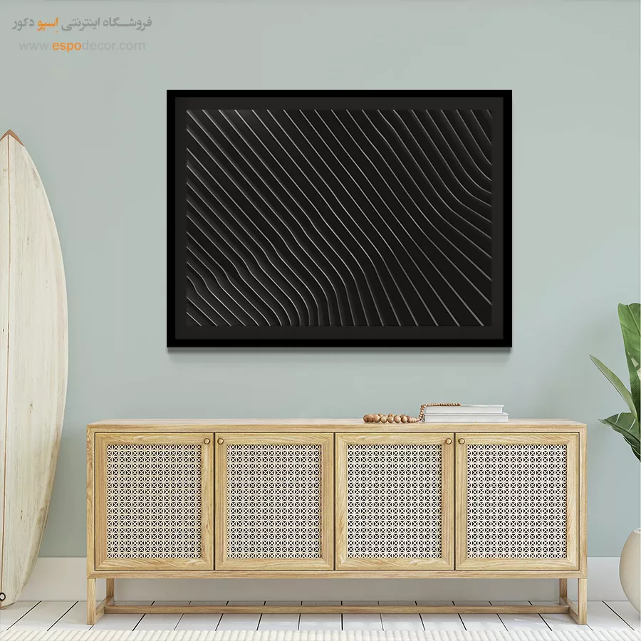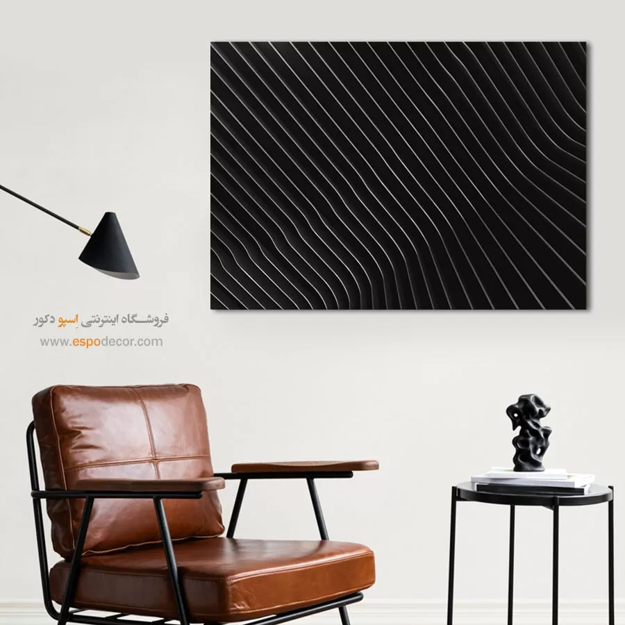 «شاهکاری از تضاد و هارمونی؛ جایی که سیاه مطلق و سفید خالص، روایتی هنری میسازند. این اثر دکوراتیو، فراتر از یک تصویر، امضایی از سلیقهی خاص شماست که با هر پالت رنگی در منزل سازگار شده و به فضای شما شخصیتی کاریزماتیک و گیرا میدهد.»