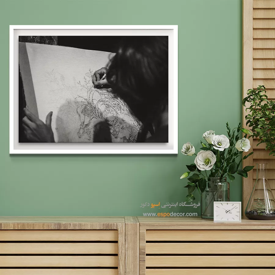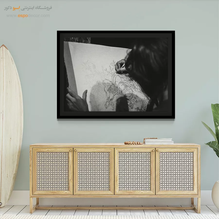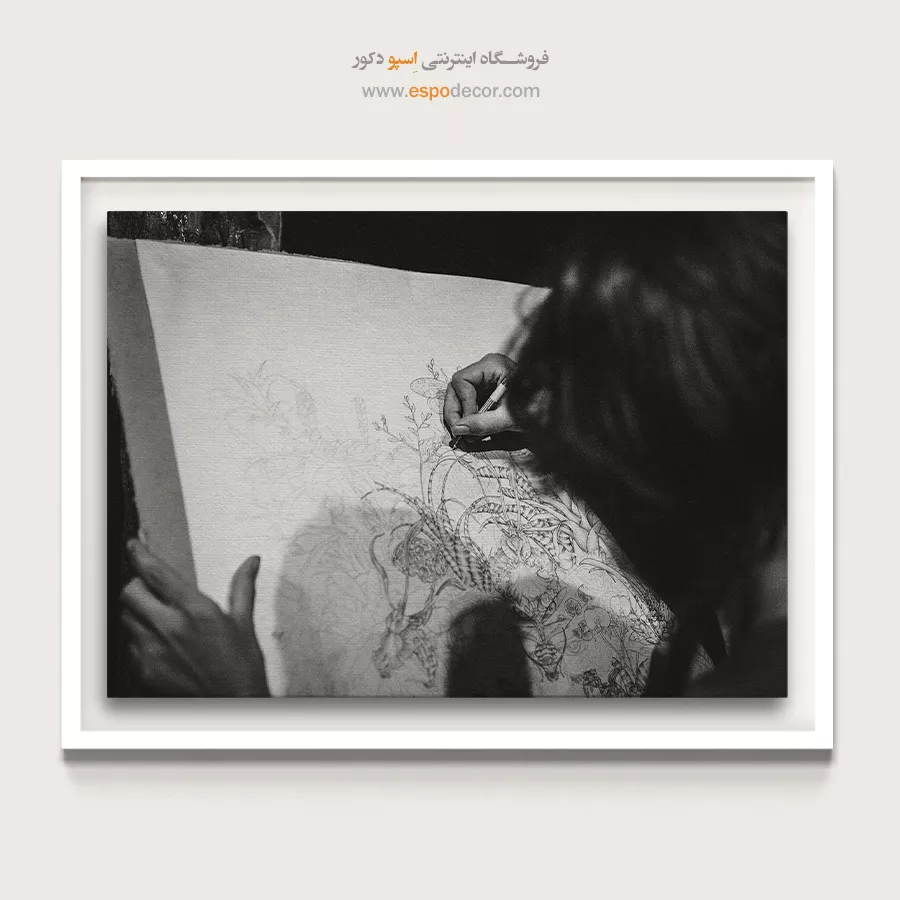 - ادامه طرح اصلی تا کنارههای بوم: ما در اسپو دکور از این روش استفاده میکنیم تا تابلو حالت منسجم و یکپارچه داشته باشد و از نمای کناری نیز جذاب دیده شود.