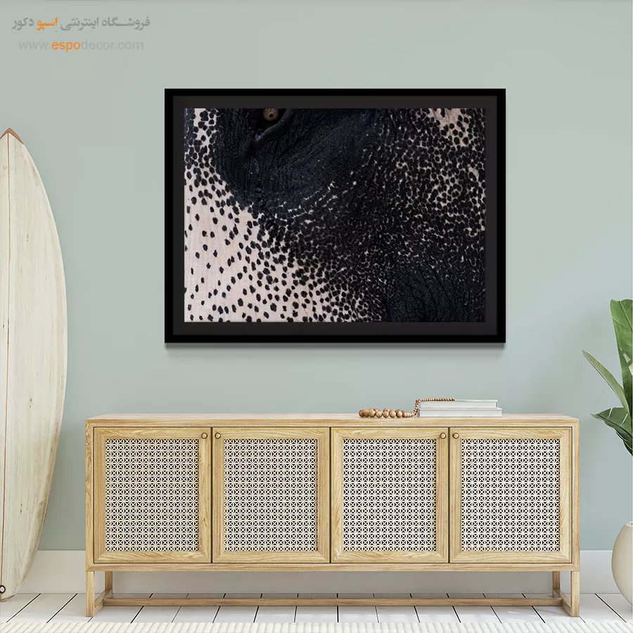 • ادامه طرح اصلی تا کناره‌های بوم: ما در اسپو دکور از این روش استفاده می‌کنیم تا تابلو حالت منسجم و یکپارچه داشته باشد و از نمای کناری نیز جذاب دیده شود.