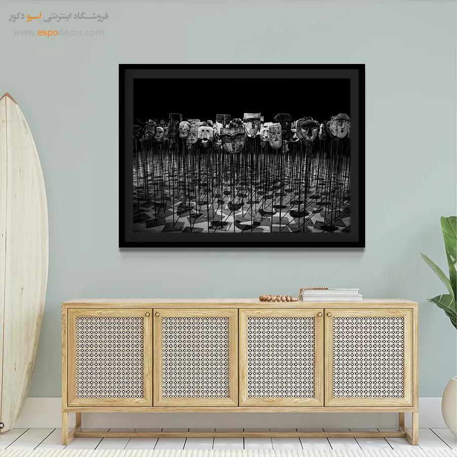 - ادامه طرح اصلی تا کنارههای بوم: ما در اسپو دکور از این روش استفاده میکنیم تا تابلو حالت منسجم و یکپارچه داشته باشد و از نمای کناری نیز جذاب دیده شود.