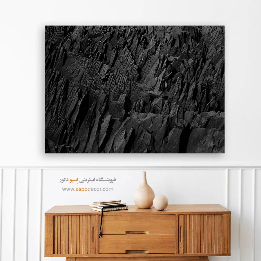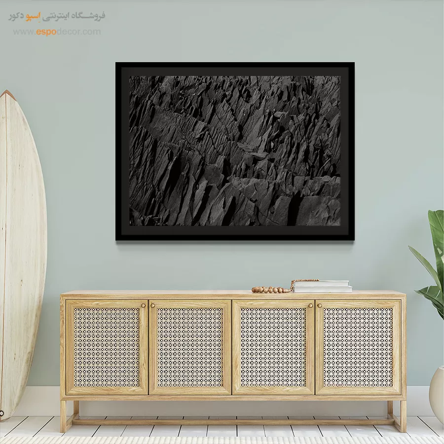 - ادامه طرح اصلی تا کنارههای بوم: ما در اسپو دکور از این روش استفاده میکنیم تا تابلو حالت منسجم و یکپارچه داشته باشد و از نمای کناری نیز جذاب دیده شود.
