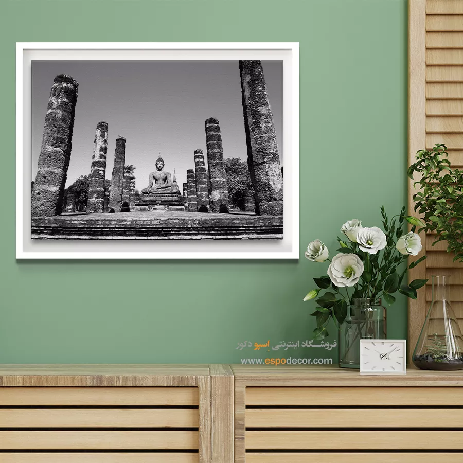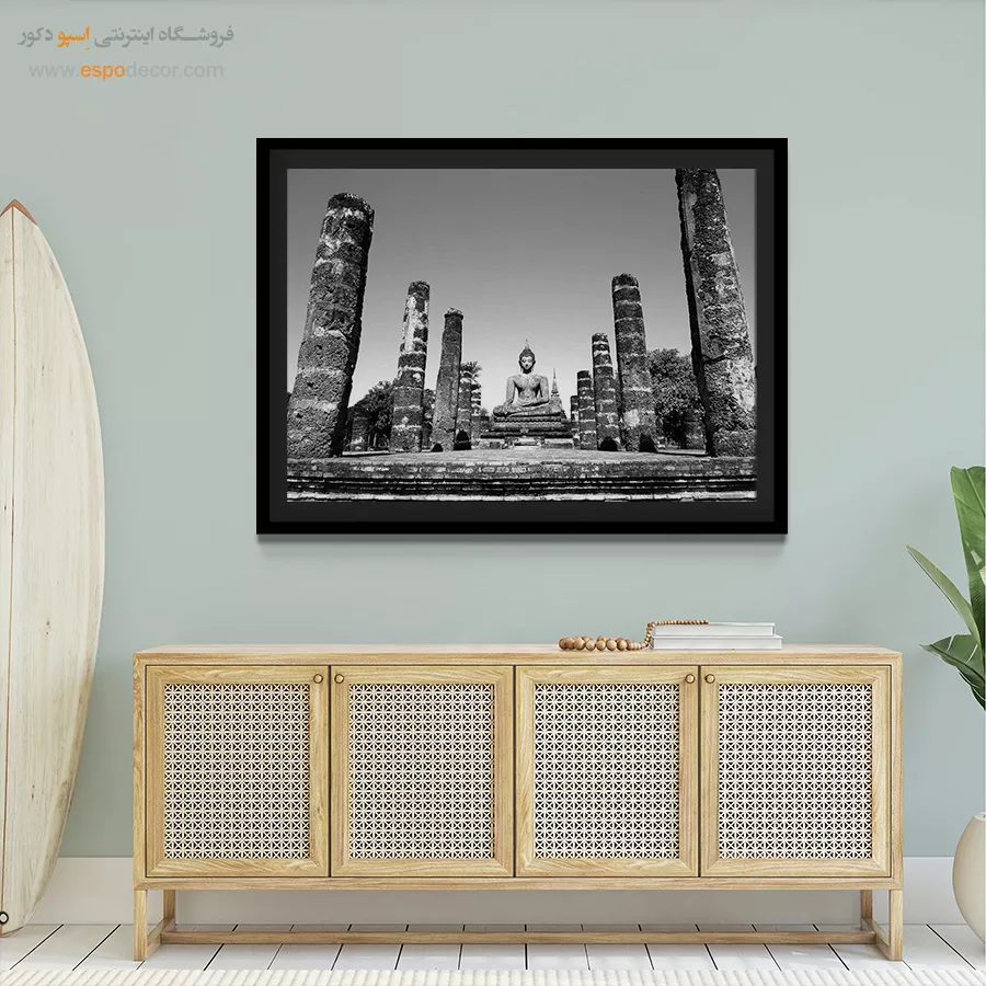 تصویری است که روی کاغذ عکاسی یا متریال صاف چاپ شده و مستقیماً روی یک تخته چوبی صاف (معمولاً MDF یا فیبر) با ضخامت کم پرس میشود و فاقد هرگونه قاب و پوشش شیشهای است. - تابلو قابدار معمولی: