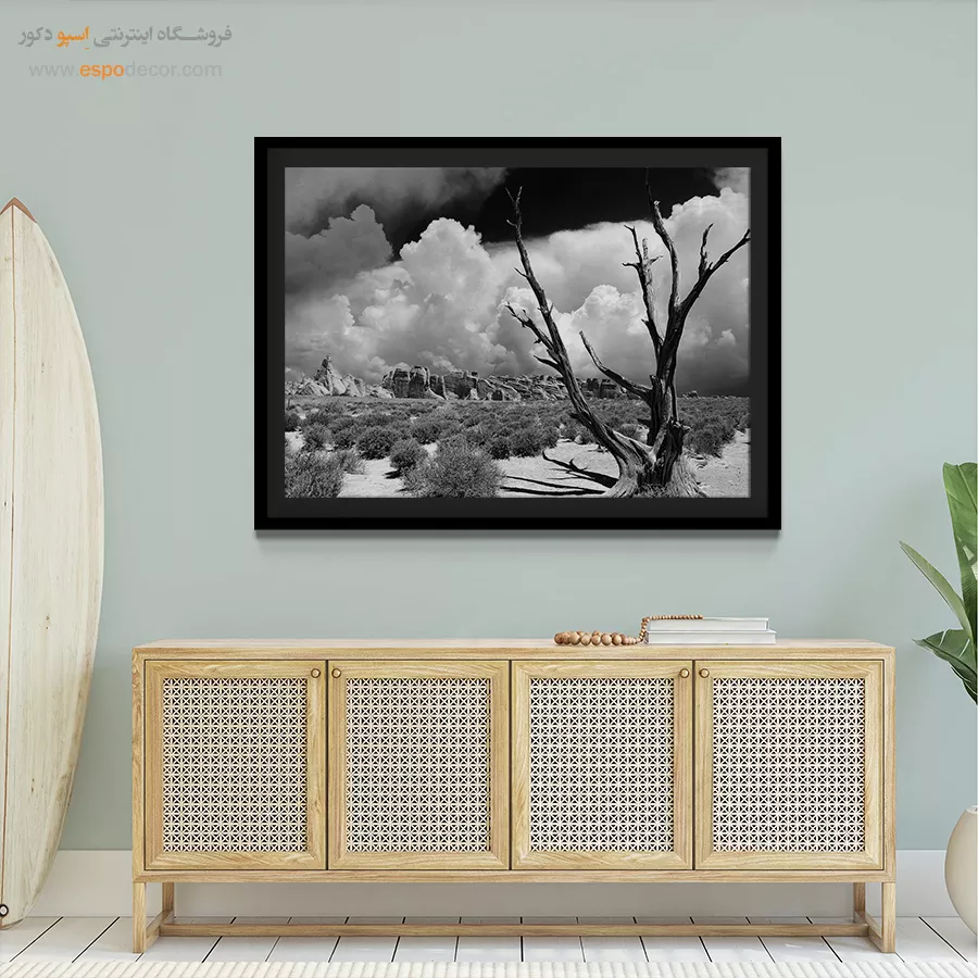 تابلو بوم سیاه و سفید، تلفیقی از سادگی و عمق بصری است که با حذف رنگ، تمرکز بیننده را به معنا و جزئیات تصویر معطوف میکند. انتخابی بیصدا اما پرقدرت برای فضاهایی با دکور مدرن یا مینیمال.