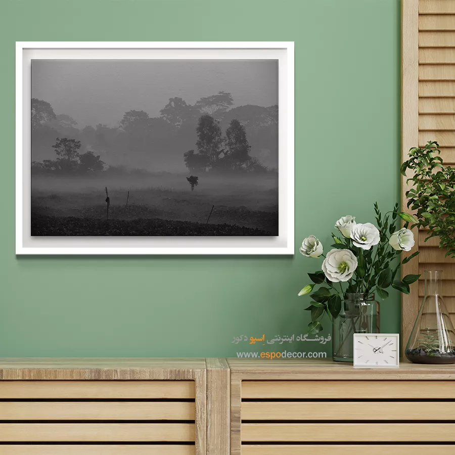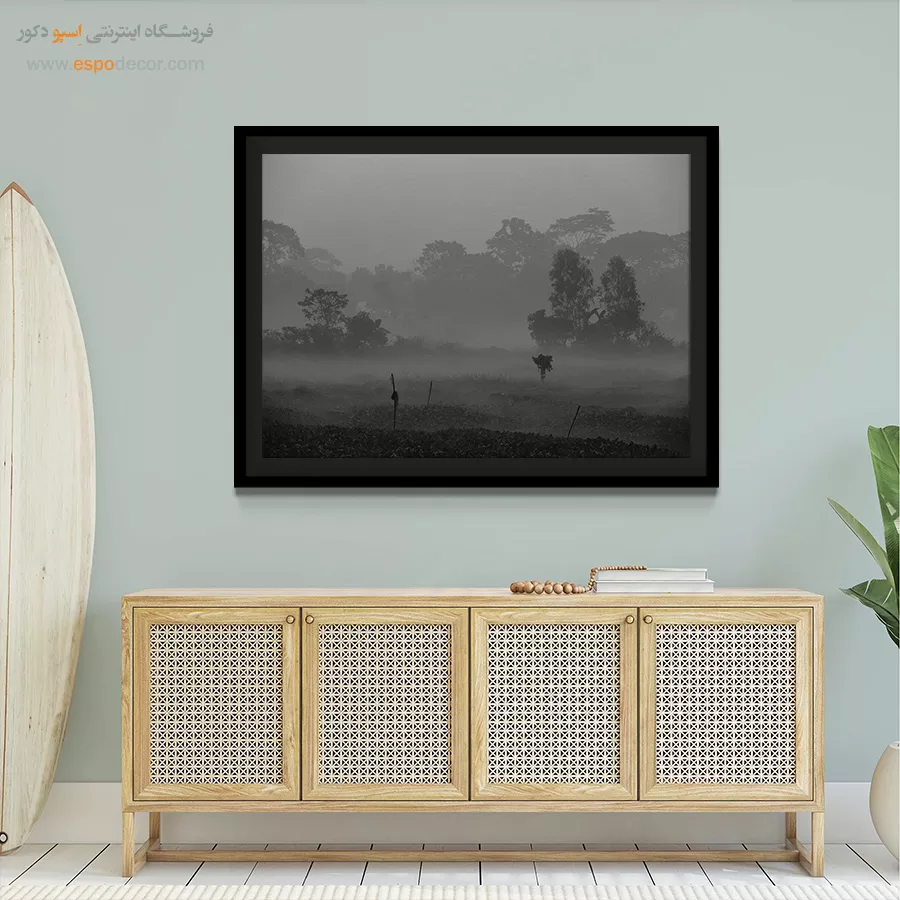 تصویری است که روی کاغذ عکاسی یا متریال صاف چاپ شده و مستقیماً روی یک تخته چوبی صاف (معمولاً MDF یا فیبر) با ضخامت کم پرس میشود و فاقد هرگونه قاب و پوشش شیشهای است. - تابلو قابدار معمولی: