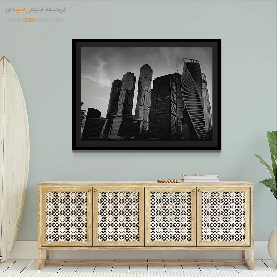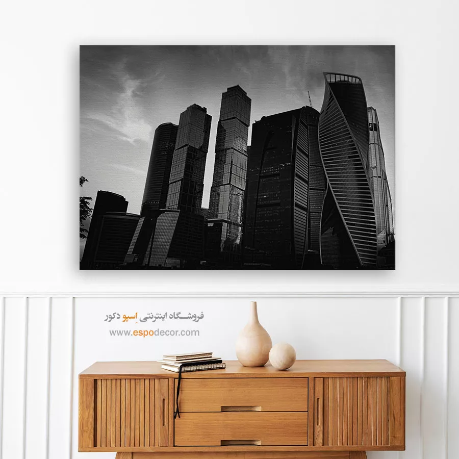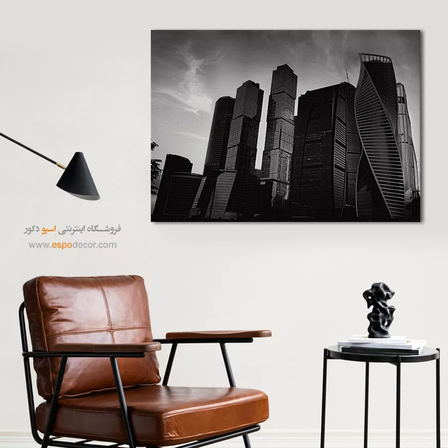 - فضای اداری: تابلو سیاه و سفید با تم معماری، خطوط منظم و سازههای صنعتی (مانند دکلها، پلها یا آسمانخراشها) بهترین انتخاب برای فضای اداری و شرکتهایی است که نیاز به القای حس نظم، حرفهای بودن و تمرکز دارند.