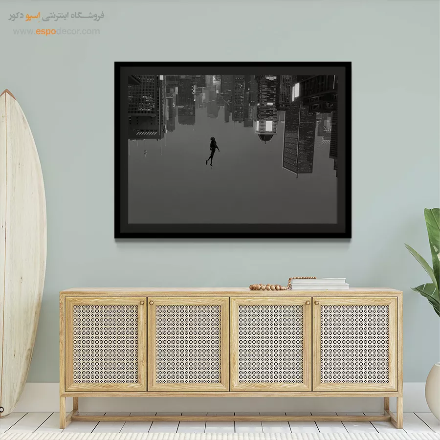 - ادامه طرح اصلی تا کنارههای بوم: ما در اسپو دکور از این روش استفاده میکنیم تا تابلو حالت منسجم و یکپارچه داشته باشد و از نمای کناری نیز جذاب دیده شود.