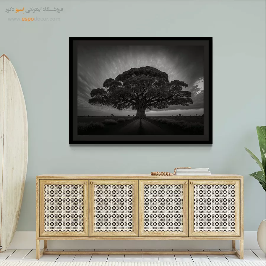 تابلو بوم سیاه و سفید، تلفیقی از سادگی و عمق بصری است که با حذف رنگ، تمرکز بیننده را به معنا و جزئیات تصویر معطوف میکند. انتخابی بیصدا اما پرقدرت برای فضاهایی با دکور مدرن یا مینیمال.