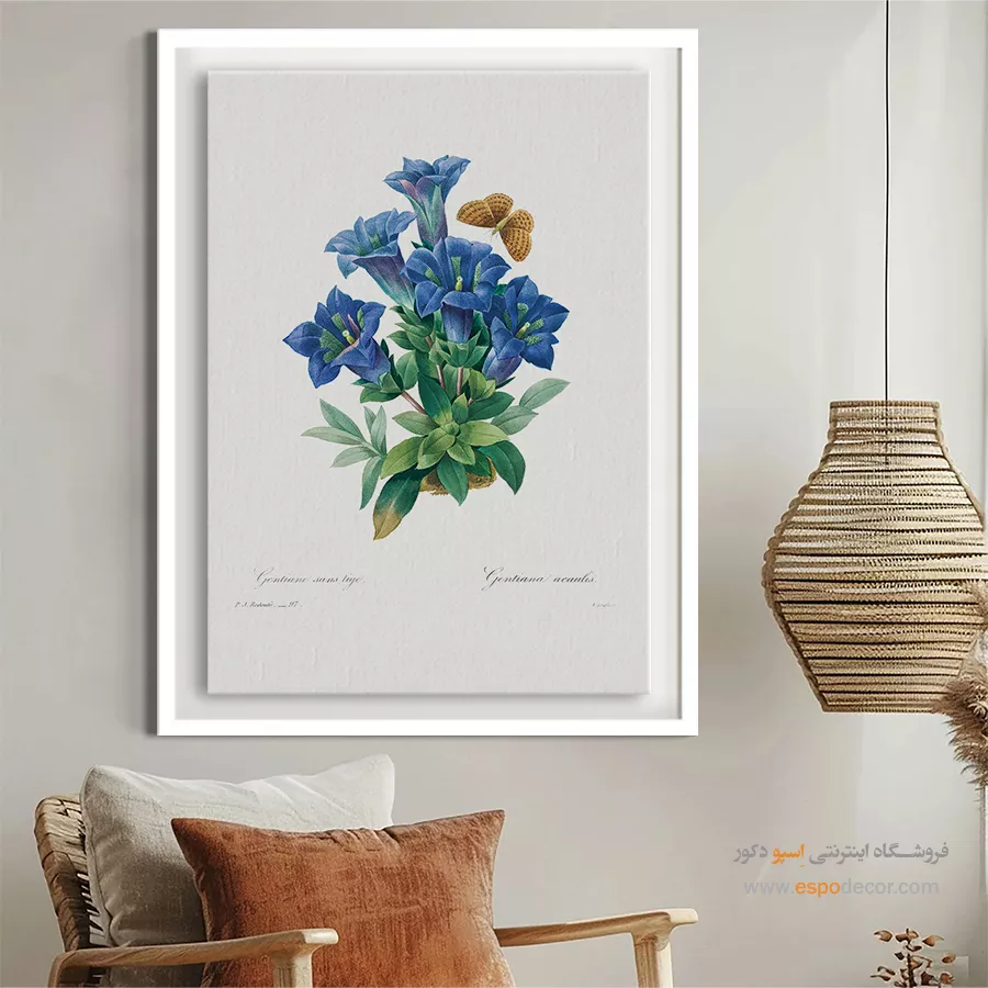 • انتخاب سایه‌های مختلف از رنگ دیوار: مانند تابلو آبی تیره روی دیوار آبی روشن، که حس آرامش و یکپارچگی در فضا ایجاد می‌کند.