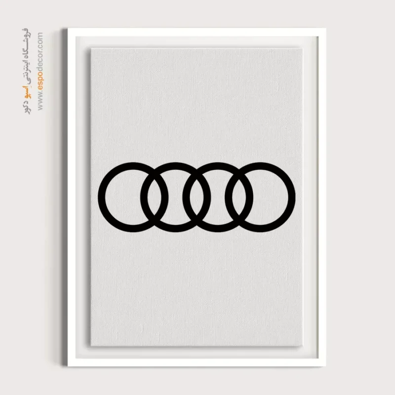 این طرح مینیمال، لوگوی چهار حلقه آئودی را به نمایش میگذارد؛ نمادی از اتحاد چهار شرکت پیشگام (آئودی، دکاو، هورش و واندرر). رنگ غالب در این طرح، مشکی مطلق روی پسزمینه سفید است که کنتراست فوقالعادهای ایجاد میکند. چهار حلقه در هم تنیده، حسی از تقارن، کمال و یکپارچگی مهندسی را منتقل میکنند. سادگی مطلق خطوط، پیام برند آئودی یعنی “پیشرفت از طریق تکنولوژی را با وقار و قدرتی آرام به بیننده القا میکند. این تابلو برای فضاهایی که هدفشان نمایش لوکس بودن در عین مدرنیته و کمینهگرایی است، ایدهآل میباشد.بوم با کیفیت و چاپ پر جزئیات