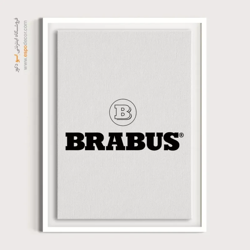 این طرح، لوگوی قدرتمند و شناختهشده Brabus را به نمایش میگذارد؛ برندی که متخصص در تیونینگ و ارتقاء عملکرد خودروهای مرسدس بنز است. لوگو شامل یک حرف “B” با طراحی خاص و برجسته در یک دایره توخالی در بالا، و تایپوگرافی پررنگ **BRABUS** در پایین است. رنگ غالب **مشکی عمیق** روی پسزمینه سفید خالص، کنتراست شدید و بیانی صریح از قدرت را ارائه میدهد. فونت سنگین و ضخیم “BRABUS” حس **بیباکی، قدرت خام و اعتماد به نفس مطلق** را منتقل میکند. این لوگو با سادگی و استحکام خود، پیامی قاطع از مهندسی بینظیر و عملکرد فوقالعاده میدهد. پیام فلسفی این تابلو، جستجوی **”کمال در سرعت و لوکس بودن افراطی”** است. این اثر هنری ایدهآل برای گاراژهای خاص، دفاتر مدیریتی و فضاهای کاری با تم قدرت و برتری است.جلوه چاپ: بوم گالری با دوام برای عمق بینظیر مشکی Brabus