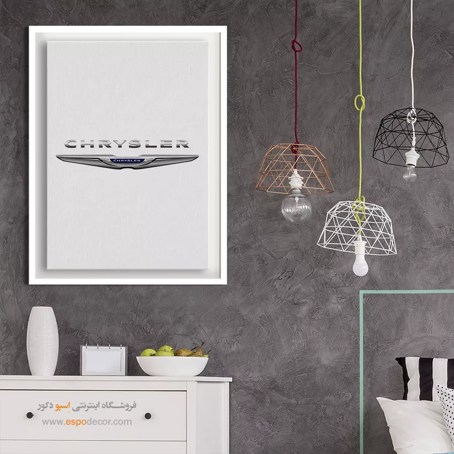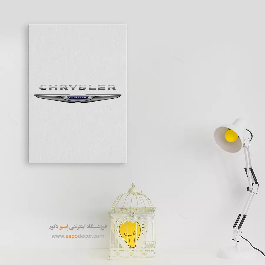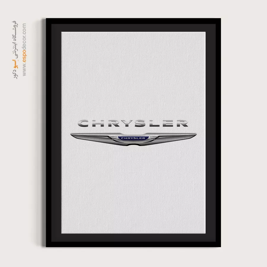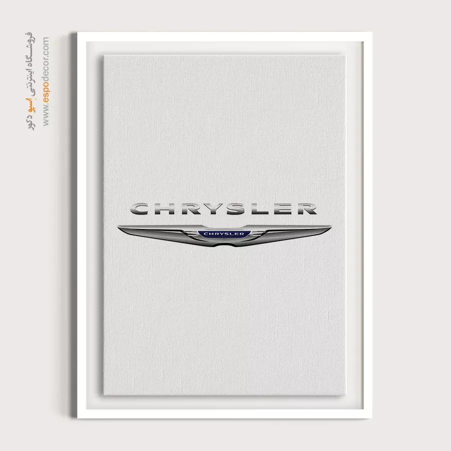 تابلو بوم لوگوی رسمی **Chrysler** تجسمی از بال‌های کرومی قدرت و میراث لوکس آمریکایی است که با طراحی کلاسیک و درخشش فلزی، یک زیبایی‌شناسی بی‌نظیر دارد؛ این اثر هنری با **چاپ با کیفیت گالری** و شبیه‌سازی دقیق بافت فلزی روی بوم کتان مرغوب، یک قطعه دکوراتیو باوقار، موجود با قاب‌های مدرن مشکی و سفید است.