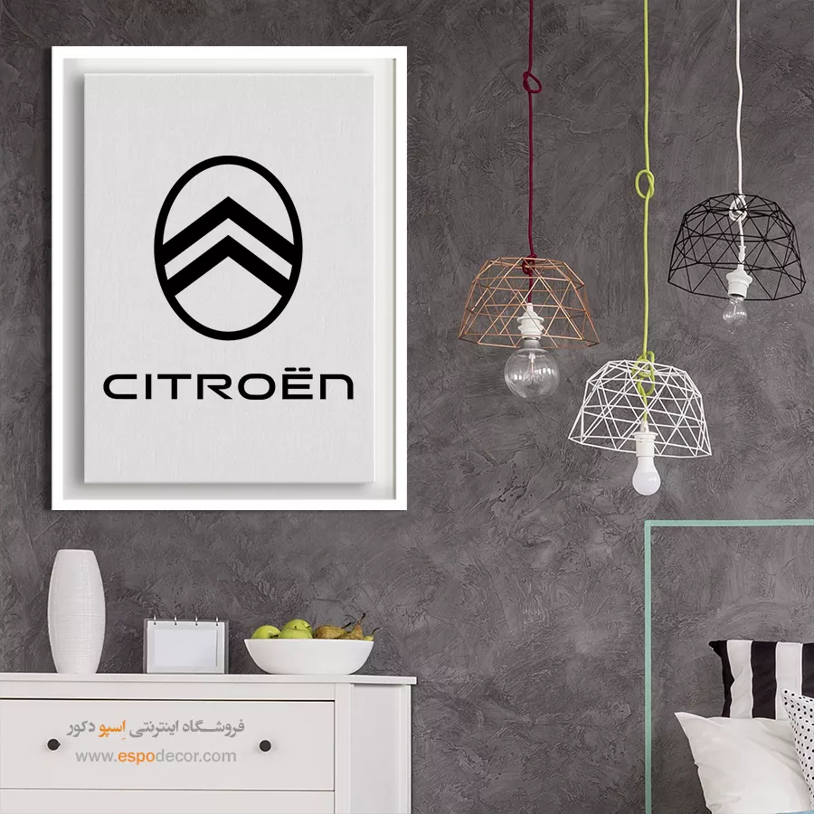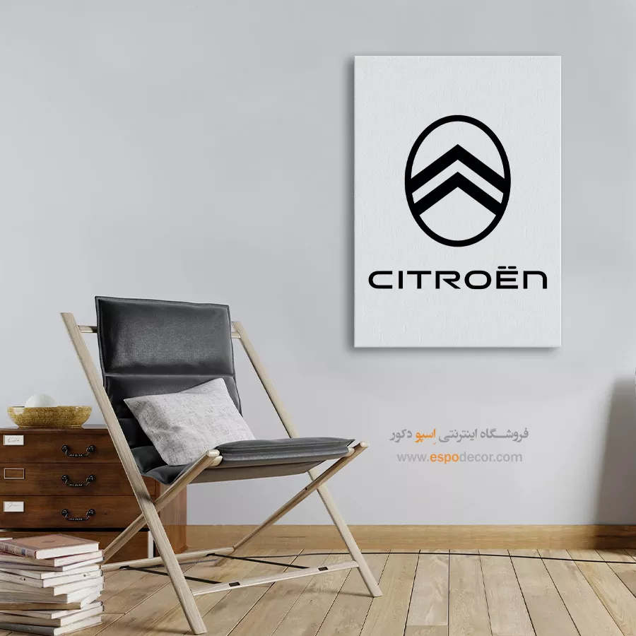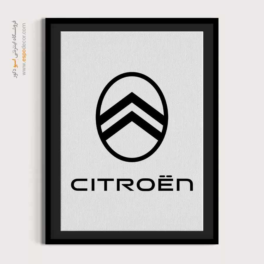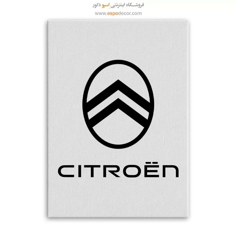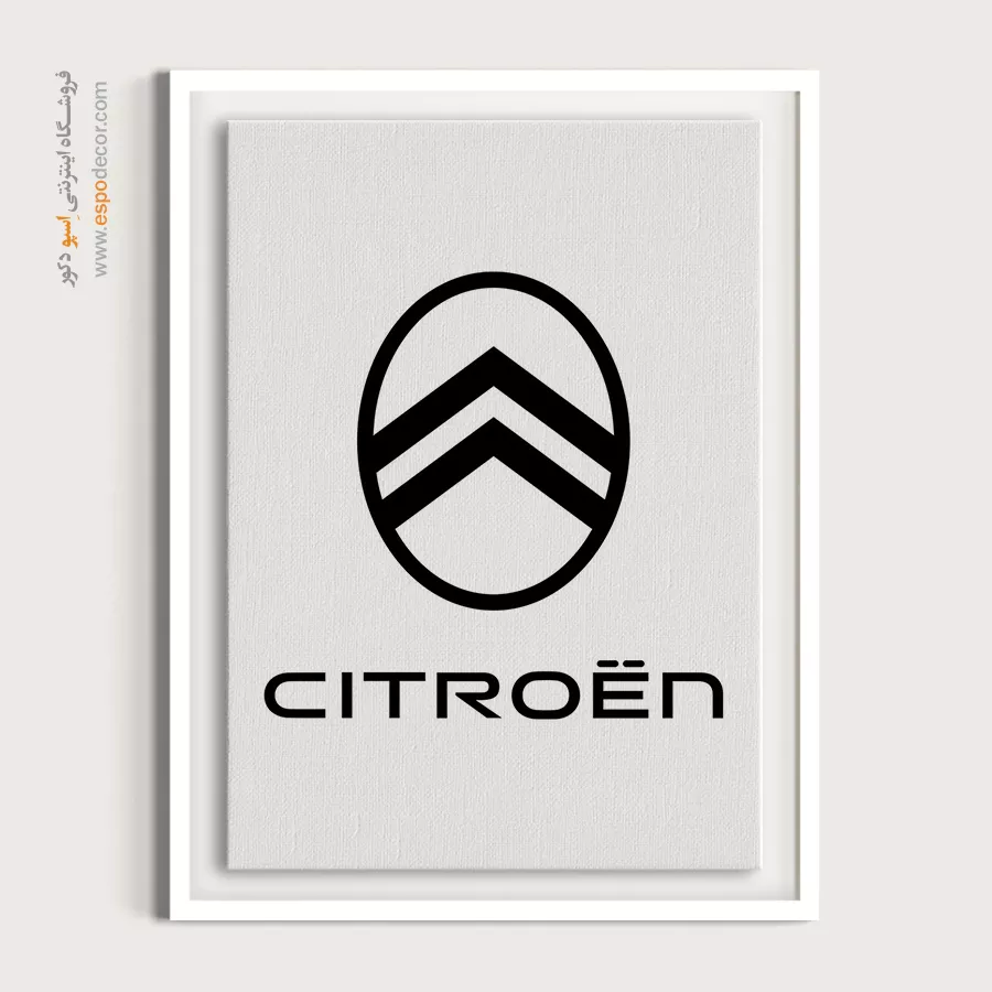 تابلو بوم لوگوی رسمی **Citroën** تجسمی از نوآوری و اصالت مهندسی فرانسوی است که با نماد دو قاچ و طراحی مینیمال، حسی از پیشرفت را منتقل میکند؛ این اثر هنری با **چاپ با کیفیت گالری** و تمرکز بر خطوط برشخورده روی بوم کتان مرغوب، یک قطعه دکوراتیو مدرن و باوقار، موجود با قابهای مدرن مشکی و سفید است.