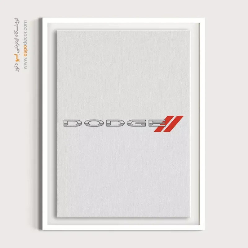 تابلو بوم لوگوی رسمی **Dodge** تجسمی از قاطعیت، اصالت آمریکایی و قدرت مطلق است که با تایپوگرافی مورب و رنگ مشکی عمیق، حسی از عملکرد بی‌باک را منتقل می‌کند؛ این اثر هنری با **چاپ با کیفیت گالری** و بالاترین وضوح حروف روی بوم کتان مرغوب، یک قطعه دکوراتیو ضروری و لوکس، موجود با قاب‌های مدرن مشکی و سفید است.