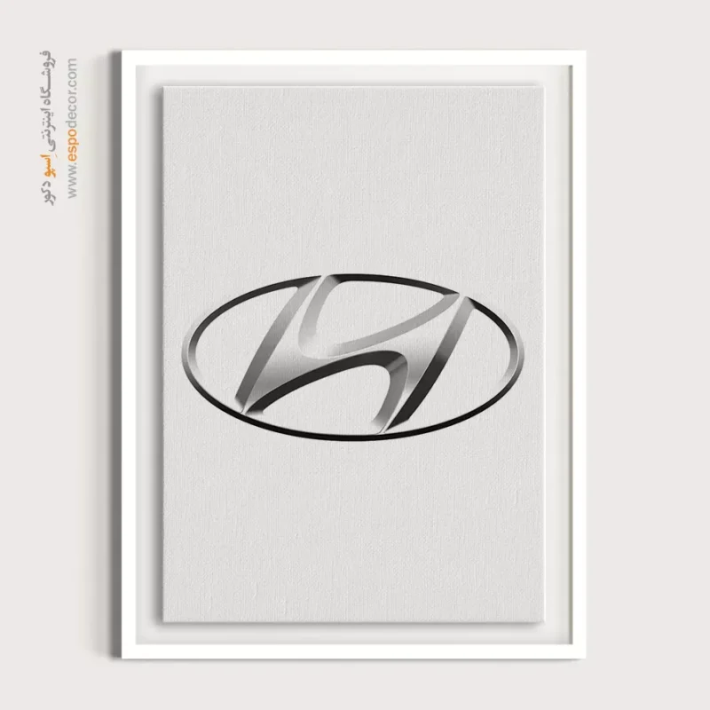 تابلو بوم لوگوی رسمی **Hyundai** تجسمی از حرکت، نوآوری و تعهد کرهای است که با نشان “H” مورب کرومی سهبُعدی در بیضی، حسی از پیشرفت و اعتماد را منتقل میکند؛ این اثر هنری با **چاپ با کیفیت گالری** و شبیهسازی دقیق جلوه فلزی روی بوم کتان مرغوب، یک قطعه دکوراتیو مدرن و نمادین، موجود با قابهای مدرن مشکی و سفید است.
