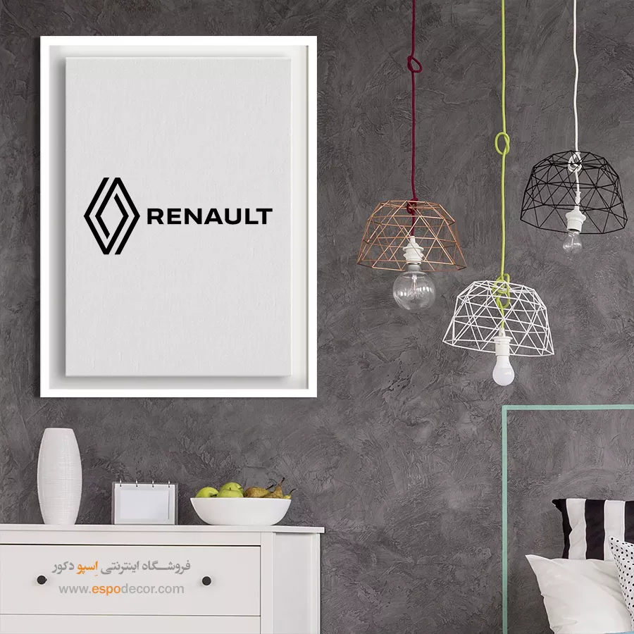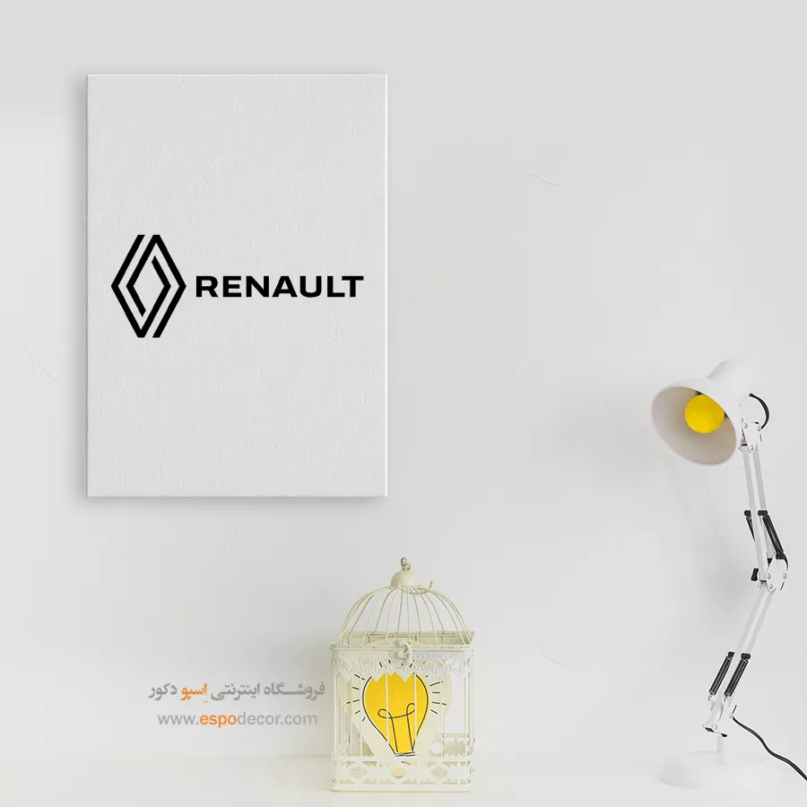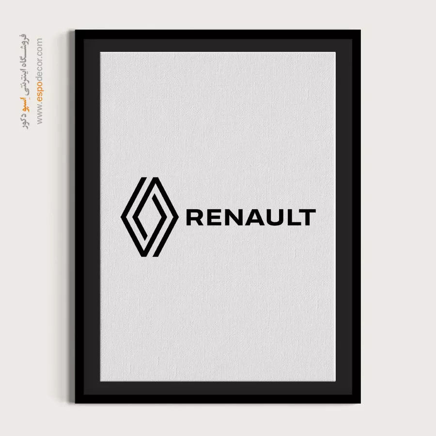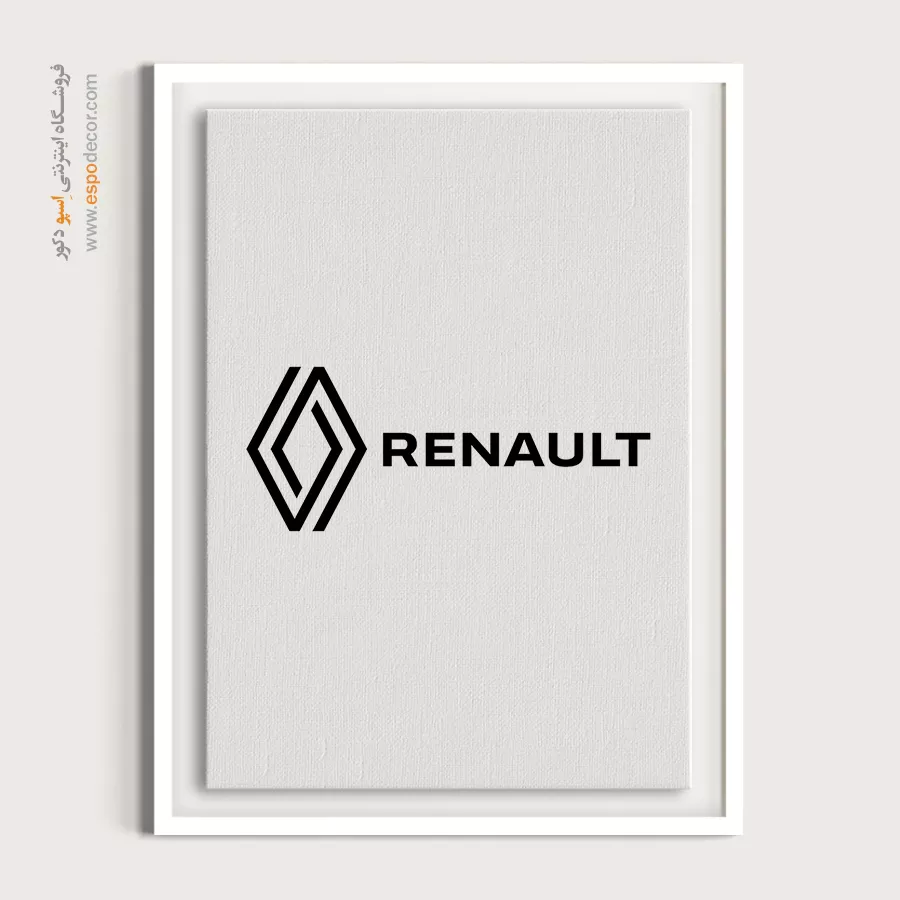 این طرح، جدیدترین و سادهترین نسخه از لوگوی رسمی برند **رنو (Renault)** است که در سال ۲۰۲۱ معرفی شد. لوگو شامل نماد نمادین **لوزی (Diamond)** یا **الماس** است که با دو خط سیاه رنگ و ضخیم که یک لوزی مرکزی را در بر گرفتهاند، طراحی شده است. این طراحی به صورت **فلت (Flat)** و **دوبُعدی** است که روند مدرن در برندسازی را دنبال میکند و بر **سادگی، شفافیت و آیندهگرایی** تأکید دارد. خطوط بهکار رفته در لوزی حس **حرکت، پویایی و پیچیدگیهای ظریف مهندسی** را با وجود سادگی، منتقل میکنند. در کنار نماد هندسی، نام **RENAULT** با فونت سنس-سریف، مدرن و با رنگ مشکی قرار گرفته است. این لوگو، نشاندهنده تعهد رنو به دوران خودروهای الکتریکی و یک بازنگری کامل در هویت برند فرانسوی است. این تابلو یک قطعه دکوراتیو ایدهآل برای فضاهای **مینیمال، دکوراسیون با تم هندسی و دفاتر کاری با نگاه به آینده** است.جلوه چاپ: بازتولید وضوح خطوط سیاه و کنتراست شدید روی بوم گالری