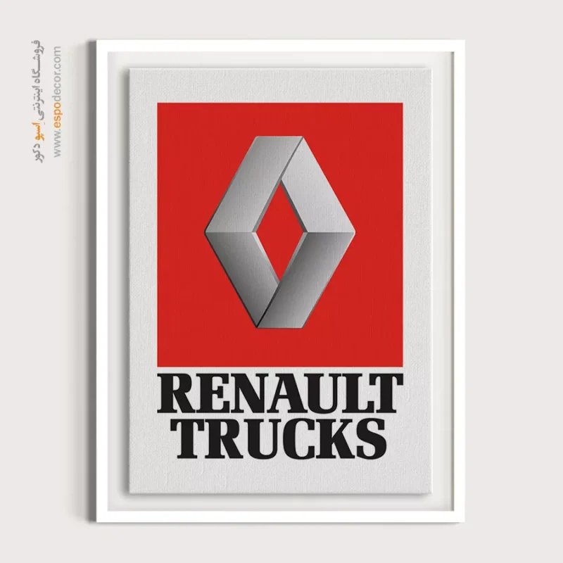 تابلو بوم لوگوی رسمی **Renault Trucks** تجسمی از قدرت صنعتی، دوام و اعتماد در حملونقل جهانی است که با نشان لوزی کرومی سهبُعدی در پسزمینه قرمز تیره، حسی از استحکام و جدیت را منتقل میکند؛ این اثر هنری با **چاپ با کیفیت گالری** و شبیهسازی دقیق جلوه فلزی روی بوم کتان مرغوب، یک قطعه دکوراتیو قاطع و نمادین، موجود با قابهای مدرن مشکی و سفید است.