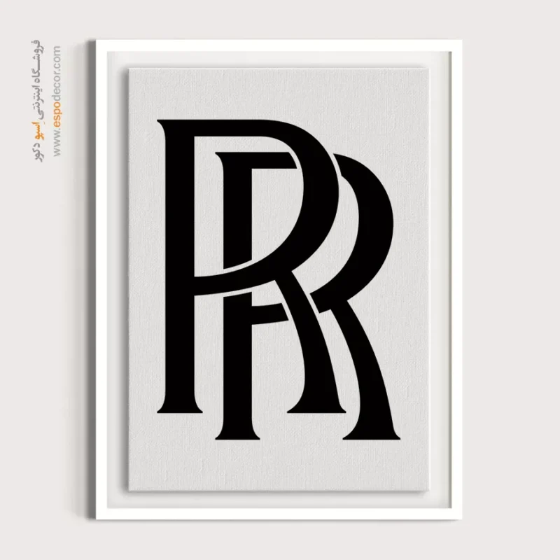 این طرح، لوگوی کلاسیک و فوقالعاده معتبر برند **رولز رویس (Rolls-Royce)**، معروف به **”Double R”** را به نمایش میگذارد. لوگو شامل دو حرف بزرگ **”R”** است که به شکلی ظریف و در عین حال قاطع، به صورت **در هم تنیده یا اورلپ** طراحی شدهاند. این دو “R” نماد نام خانوادگی بنیانگذاران شرکت، **چارلز رولز (Charles Rolls)** و **هنری رویس (Henry Royce)** هستند و اتحاد بینقص آنها در جستجوی کمال مهندسی و لوکس بودن را نشان میدهند. فونت به کار رفته، یک سریف کلاسیک و سنگین است که حسی از **اصالت، میراث تاریخی و قدرت کلاسیک** را منتقل میکند. رنگ **مشکی (یا گاهی نقرهای/طلایی)**، نماد **ابهت، رسمیت، انحصار و شیکپوشی بینظیر** است. این تابلو یک قطعه دکوراتیو سطح بالا برای اتاقهای کار لوکس، سالنهای پذیرایی با دکوراسیون کلاسیک یا مدرن و فضاهایی است که به دنبال القای حس **ثروت، کیفیت بیقید و شرط و اشرافیت** هستند.جلوه چاپ: بازتولید قاطعیت خطوط کلاسیک و عمق مشکی روی بوم گالری