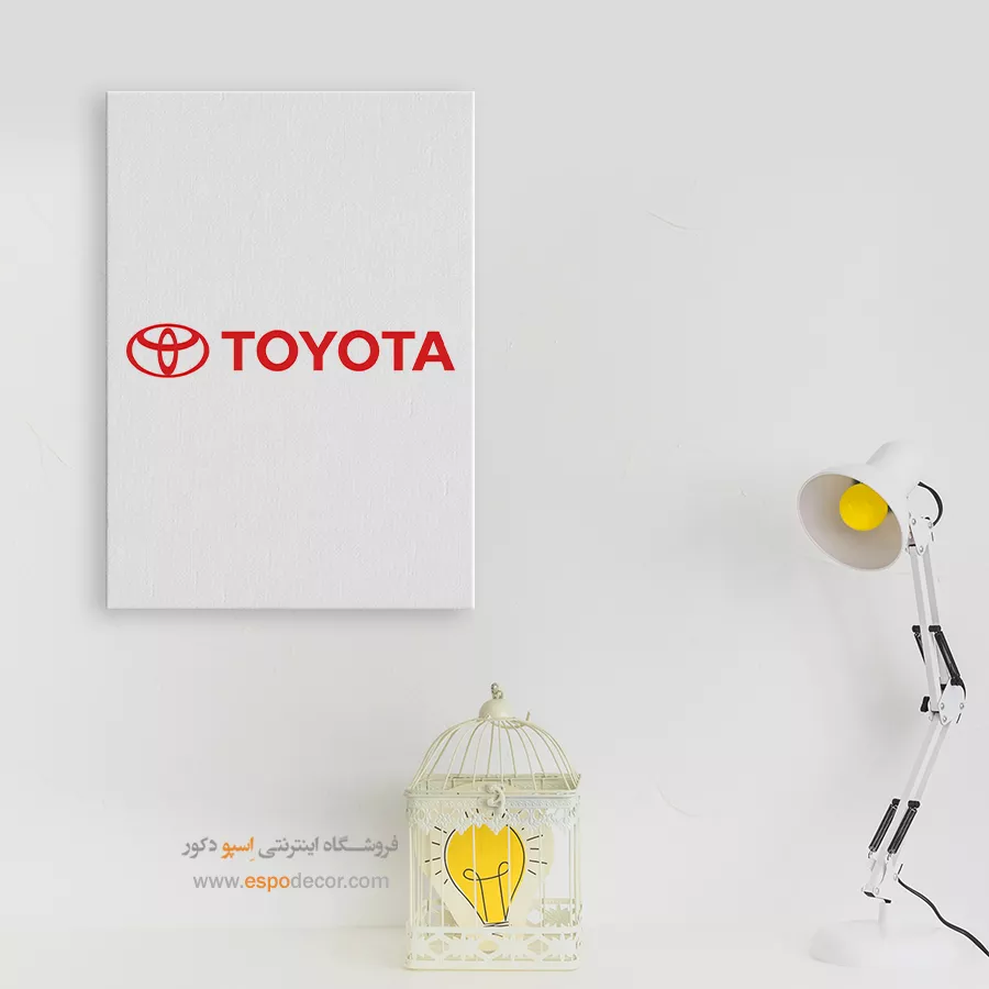 تابلو بوم لوگوی رسمی **Toyota** تجسمی از نوآوری، کیفیت بیپایان و ارتباط با مشتری است که با نشان سه بیضی قرمز رنگ در هم تنیده، حسی از اعتماد و اصالت ژاپنی را منتقل میکند؛ این اثر هنری با **چاپ با کیفیت گالری** و شبیهسازی دقیق جلوه سهبُعدی روی بوم کتان مرغوب، یک قطعه دکوراتیو نمادین و معتبر، موجود با قابهای مدرن مشکی و سفید است.