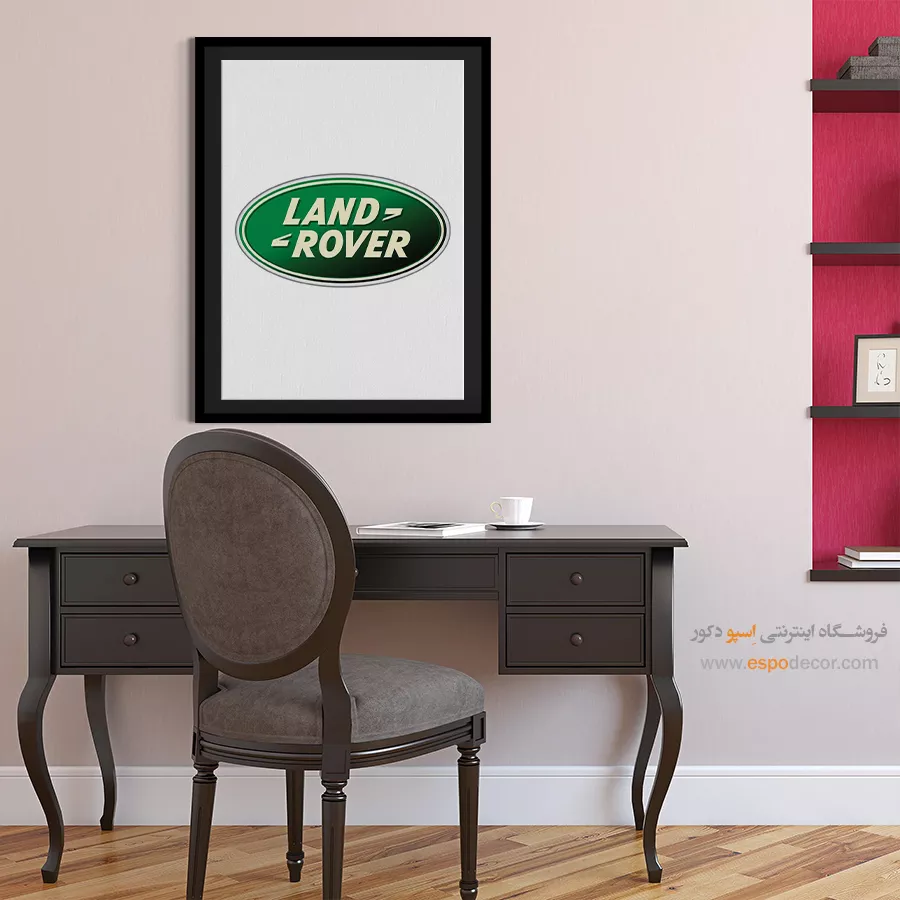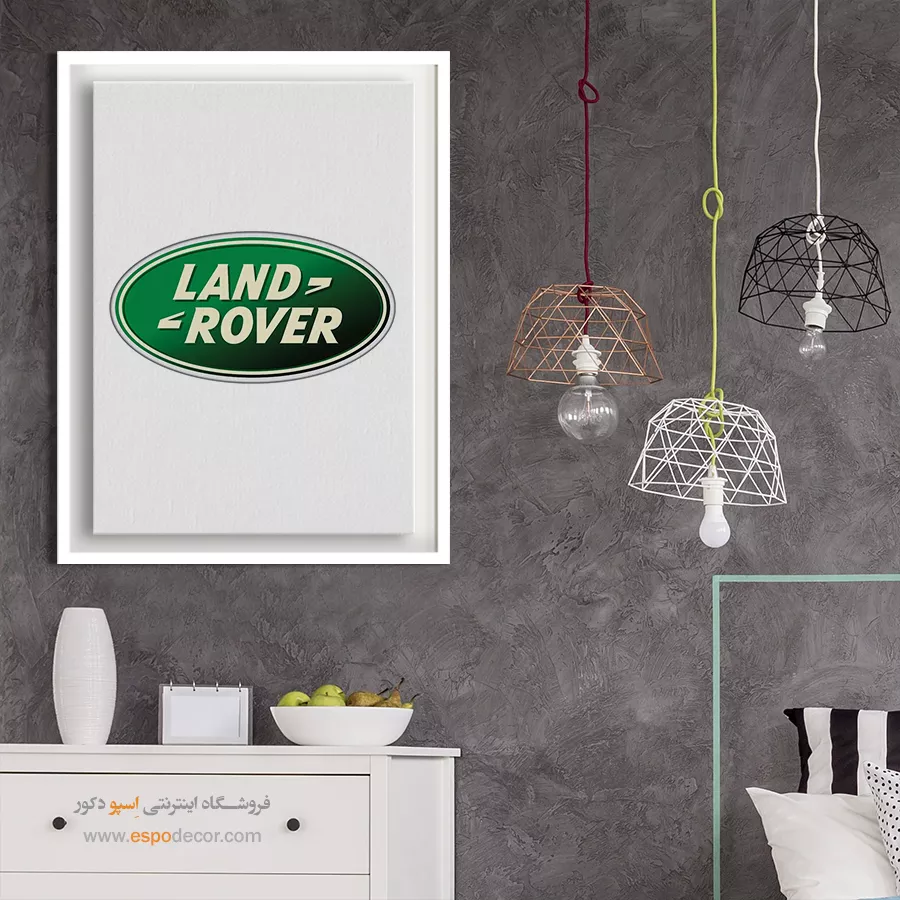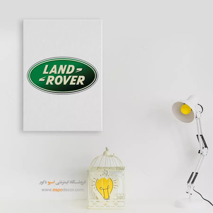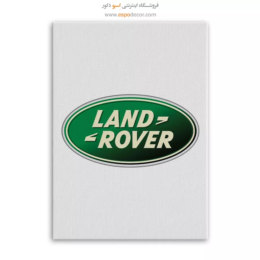 این طرح، لوگوی کلاسیک و بسیار معتبر برند **لندروور (Land Rover)** را به نمایش میگذارد. لوگو شامل نام نوشتاری **”LAND ROVER”** است که با فونتی اختصاصی و قاطع، درون یک **بیضی افقی** قرار گرفته است.**رنگ اصلی** این بیضی، یک **سبز تیره عمیق و اشرافی** است که بهطور سنتی به معنای **”سبز مسابقهای بریتانیایی” (British Racing Green)** بوده و نمادی از **میراث، طبیعت، اصالت و پیوند با محیط زیست** (آفرود) است. بیضی با یک **حاشیه نقرهای یا کرومی سهبُعدی** احاطه شده که بر حس **مهندسی دقیق و کیفیت لوکس** تأکید دارد. همچنین، دو شکل کوچک شبیه به حرف **’Z’** در دو طرف نام نوشتاری در داخل بیضی دیده میشود که نمادین بودن و تمایز را بیشتر میکند. این تابلو یک قطعه دکوراتیو ایدهآل برای دفاتر مدیریتی، فضاهای کاری با تم طبیعت و ماجراجویی، و گاراژهای خودروهای شاسی بلند لوکس است.جلوه چاپ: بازتولید عمق سبز اشرافی و جلوه سهبُعدی کرومی روی بوم گالری