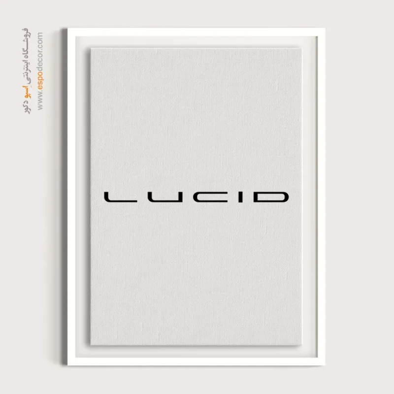 تابلو بوم لوگوی رسمی **Lucid** تجسمی از آینده، لوکس بودن و نوآوری آمریکایی است که با تایپوگرافی مدرن و فضایی مشکی فلت، حسی از سرعت الکتریکی، تکنولوژی پیشرفته و ظرافت مینیمال را منتقل میکند؛ این اثر هنری با **چاپ با کیفیت گالری** و شبیهسازی دقیق وضوح خطوط روی بوم کتان مرغوب، یک قطعه دکوراتیو آیندهنگر، شیک و ضروری، موجود با قابهای مدرن مشکی و سفید است.
