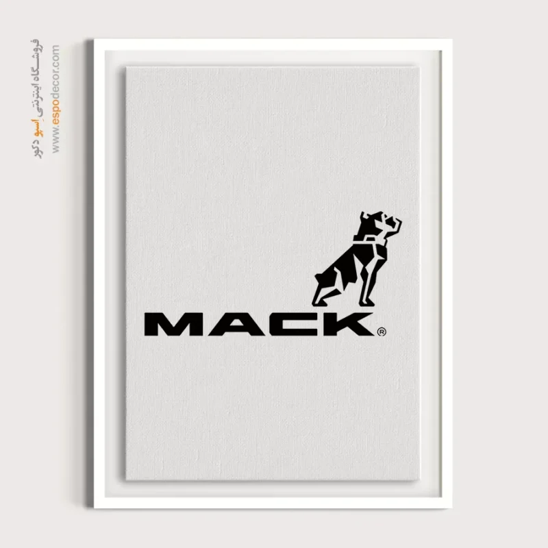 تابلو بوم لوگوی رسمی **Mack Trucks** تجسمی از قدرت بیپایان، دوام صنعتی و میراث باربری سنگین آمریکایی است که با نشان بولداگ سهبُعدی و تایپوگرافی سنگین مشکی فلت، حسی از استحکام و تسلط را منتقل میکند؛ این اثر هنری با **چاپ با کیفیت گالری** و شبیهسازی دقیق ساختار هندسی روی بوم کتان مرغوب، یک قطعه دکوراتیو قاطع، فنی و ضروری، موجود با قابهای مدرن مشکی و سفید است.
