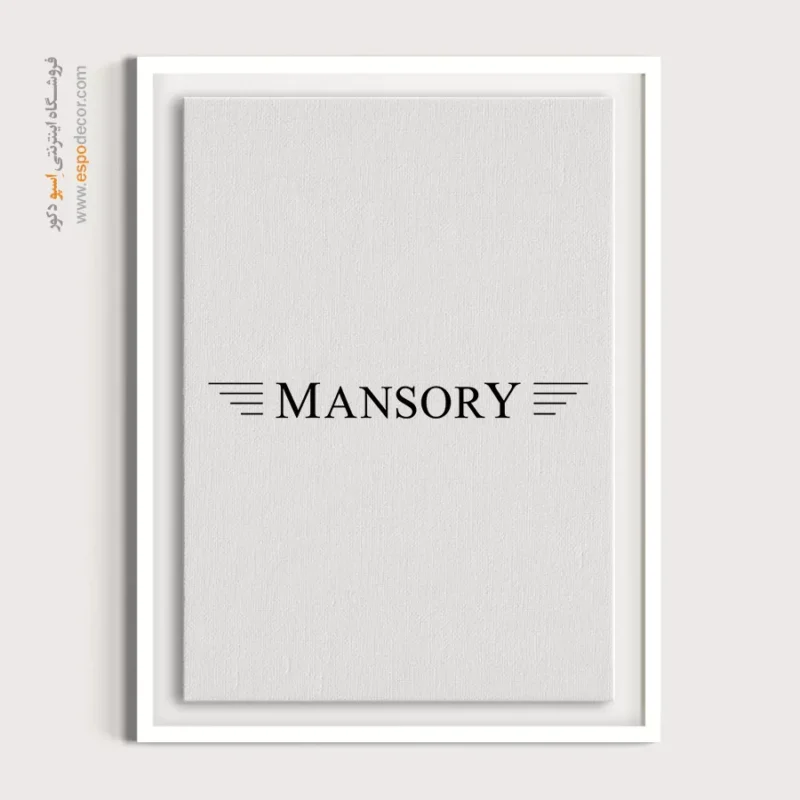 تابلو بوم لوگوی رسمی **Mansory** تجسمی از شخصیسازی افراطی، تیونینگ سطح بالا و تجمل آلمانی است که با فونت سِریف اشرافی و نشان بالدار مشکی فلت، حسی از تمایز مطلق و عملکرد پرسرعت را منتقل میکند؛ این اثر هنری با **چاپ با کیفیت گالری** و شبیهسازی دقیق وضوح تایپوگرافی روی بوم کتان مرغوب، یک قطعه دکوراتیو انحصاری، شیک و ضروری، موجود با قابهای مدرن مشکی و سفید است.