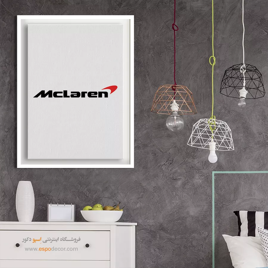 تابلو بوم لوگوی رسمی **McLaren** تجسمی از عملکرد خالص، مهندسی بریتانیایی و میراث فرمول یک است که با تایپوگرافی آیرودینامیک مشکی و نشان تیک سرعت قرمز، حسی از برتری رقابتی و حرکت بیمحابا را منتقل میکند؛ این اثر هنری با **چاپ با کیفیت گالری** و شبیهسازی دقیق سرخی پویا روی بوم کتان مرغوب، یک قطعه دکوراتیو سریع، تکنولوژیک و ضروری، موجود با قابهای مدرن مشکی و سفید است.