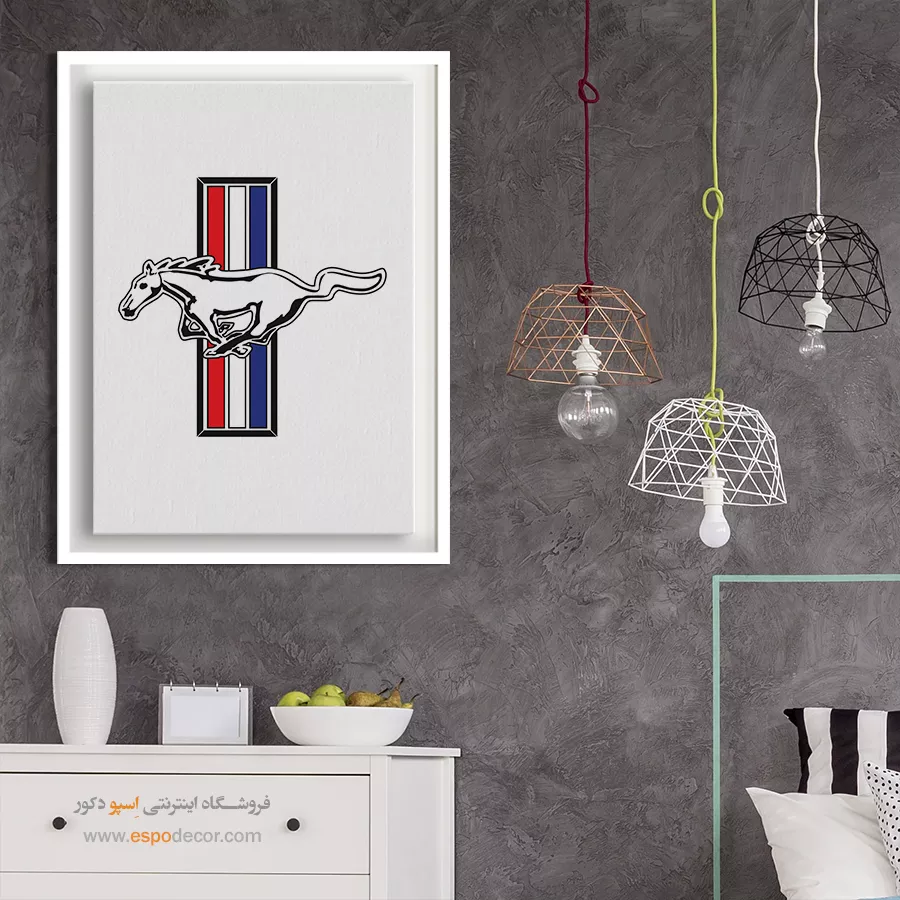 تابلو بوم لوگوی رسمی **Ford Mustang** تجسمی از آزادی، عملکرد آمریکایی و میراث جاودانه ماسل کار است که با نشان اسب وحشی گالوپینگ روی خطوط سهرنگ، حسی از سرعت و قدرت رهاشده را منتقل میکند؛ این اثر هنری با **چاپ با کیفیت گالری** و شبیهسازی دقیق وضوح خطوط و سرزندگی رنگها روی بوم کتان مرغوب، یک قطعه دکوراتیو پویا، کلاسیک و ضروری، موجود با قابهای مدرن مشکی و سفید است.