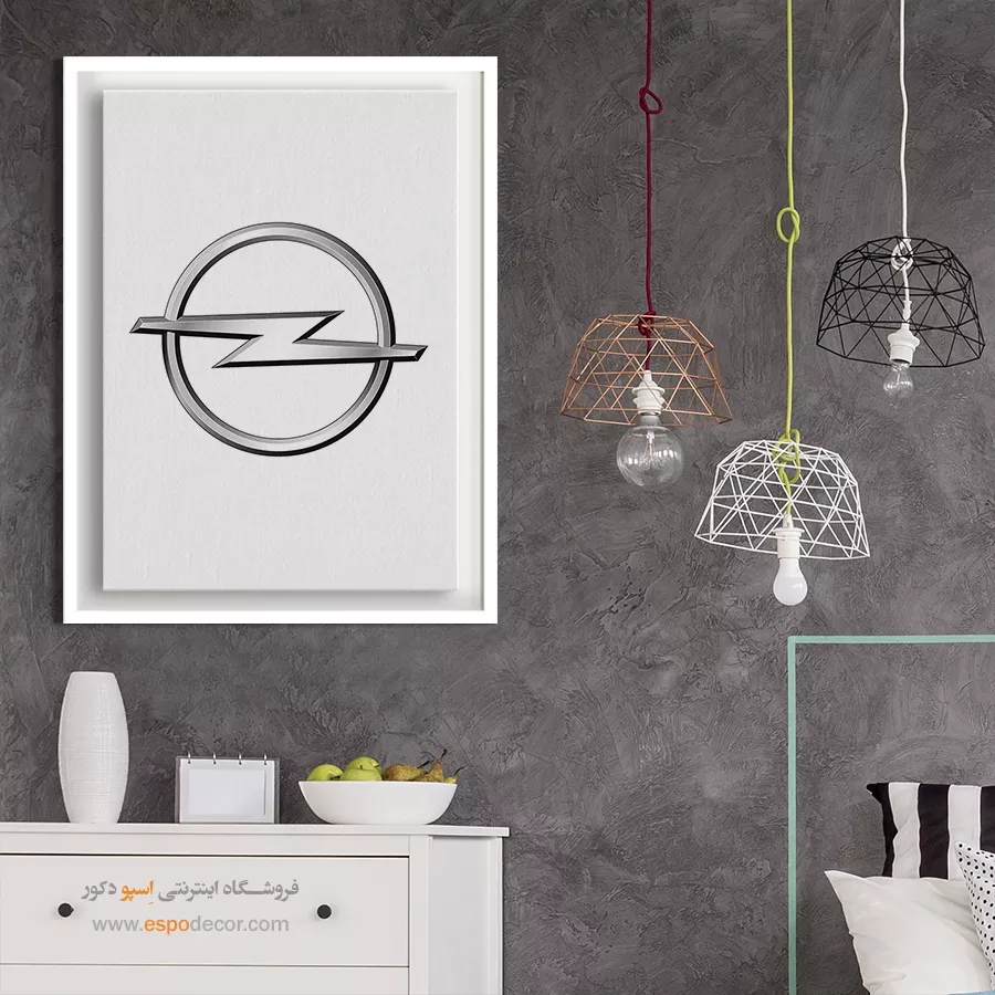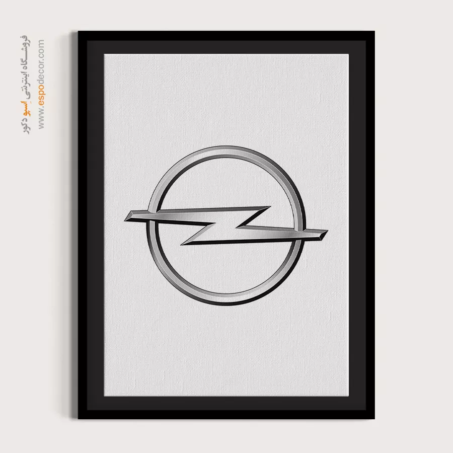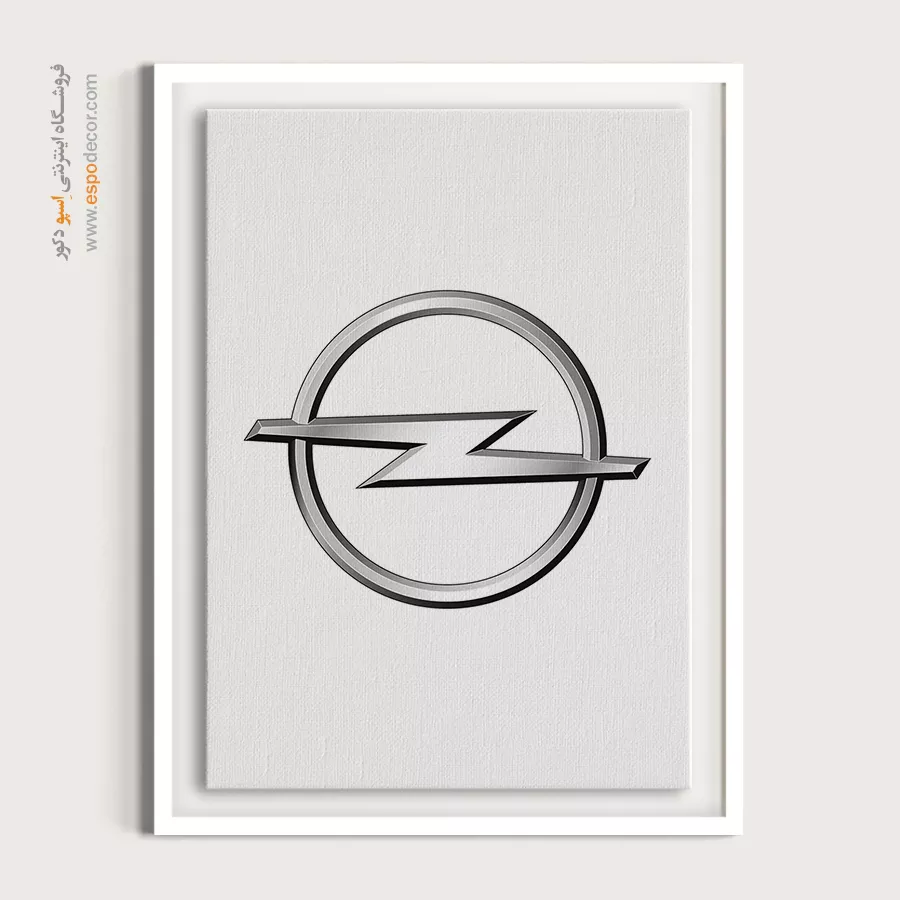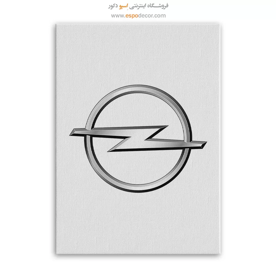 تابلو بوم لوگوی رسمی **Opel** تجسمی از مهندسی آلمانی، سابقه صنعتی طولانی و قدرت ثابت است که با نشان صاعقه کرومی سهبُعدی در دل یک حلقه، حسی از سرعت و نوآوری ماندگار را منتقل میکند؛ این اثر هنری با **چاپ با کیفیت گالری** و شبیهسازی دقیق درخشش فلز و عمق سایهزنی روی بوم کتان مرغوب، یک قطعه دکوراتیو کلاسیک، فنی و ضروری، موجود با قابهای مدرن مشکی و سفید است.