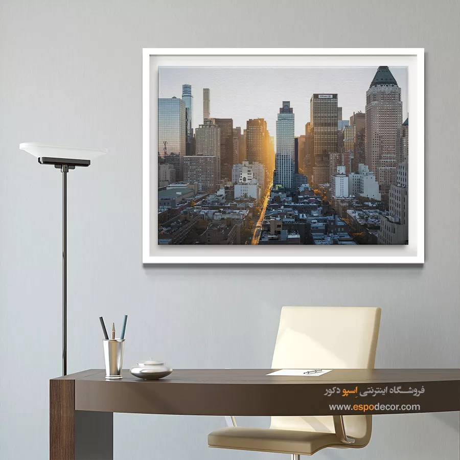 تصویری است که روی کاغذ عکاسی یا متریال صاف چاپ شده و مستقیماً روی یک تخته چوبی صاف (معمولاً MDF یا فیبر) با ضخامت کم پرس میشود و فاقد هرگونه قاب و پوشش شیشهای است. - تابلو قابدار معمولی: