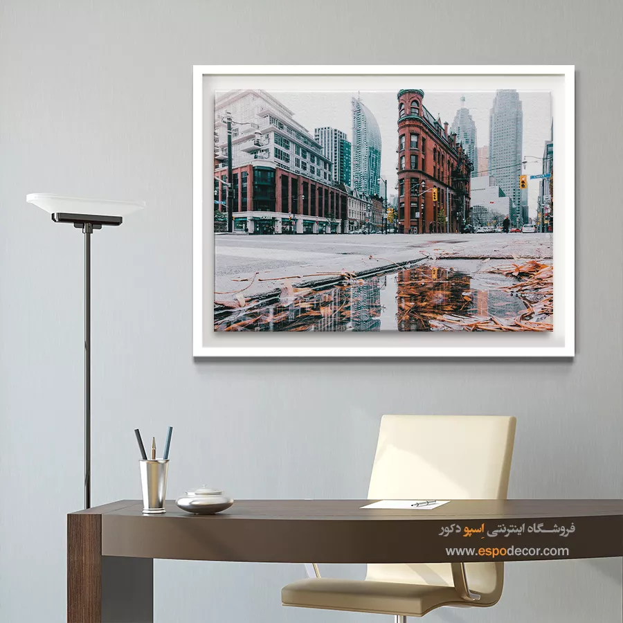 - ادامه طرح اصلی تا کنارههای بوم: ما در اسپو دکور از این روش استفاده میکنیم تا تابلو حالت منسجم و یکپارچه داشته باشد و از نمای کناری نیز جذاب دیده شود.