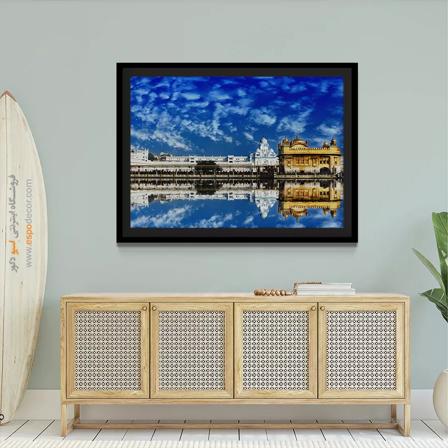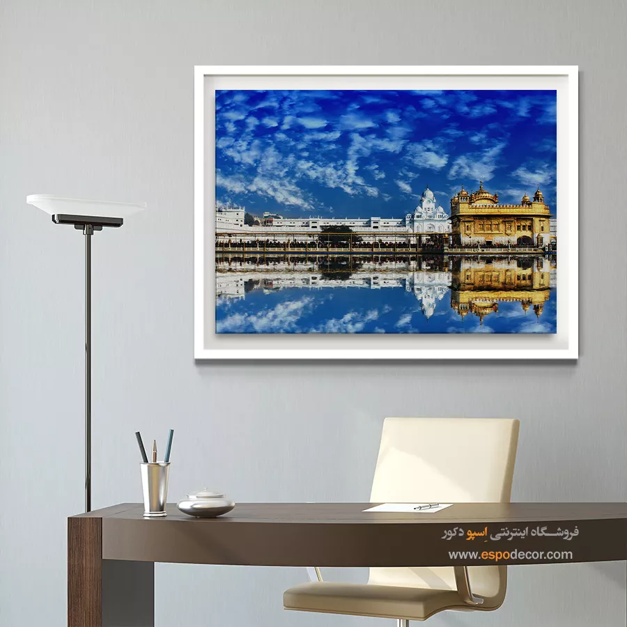 تصویری است که روی کاغذ عکاسی یا متریال صاف چاپ شده و مستقیماً روی یک تخته چوبی صاف (معمولاً MDF یا فیبر) با ضخامت کم پرس میشود و فاقد هرگونه قاب و پوشش شیشهای است. - تابلو قابدار معمولی: