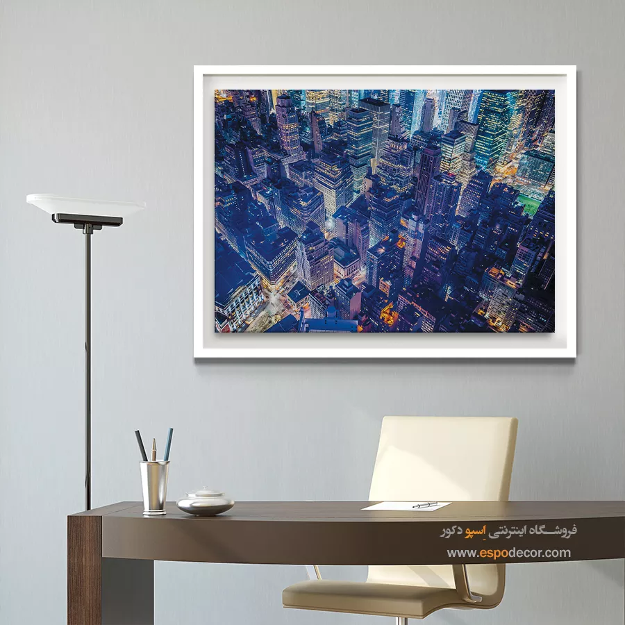 تصویری است که روی کاغذ عکاسی یا متریال صاف چاپ شده و مستقیماً روی یک تخته چوبی صاف (معمولاً MDF یا فیبر) با ضخامت کم پرس میشود و فاقد هرگونه قاب و پوشش شیشهای است. - تابلو قابدار معمولی:
