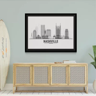 • نصب بالای مبلمان: اگر تابلوها بالای مبل یا کنسول نصب می‌شوند، لبه پایینی آن‌ها باید حدود ۱۵ تا ۳۰ سانتی‌متر بالاتر از لبه بالایی مبلمان باشد.