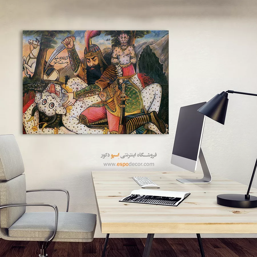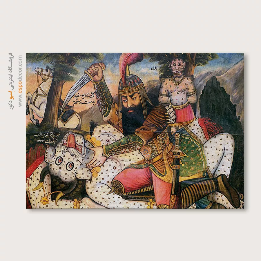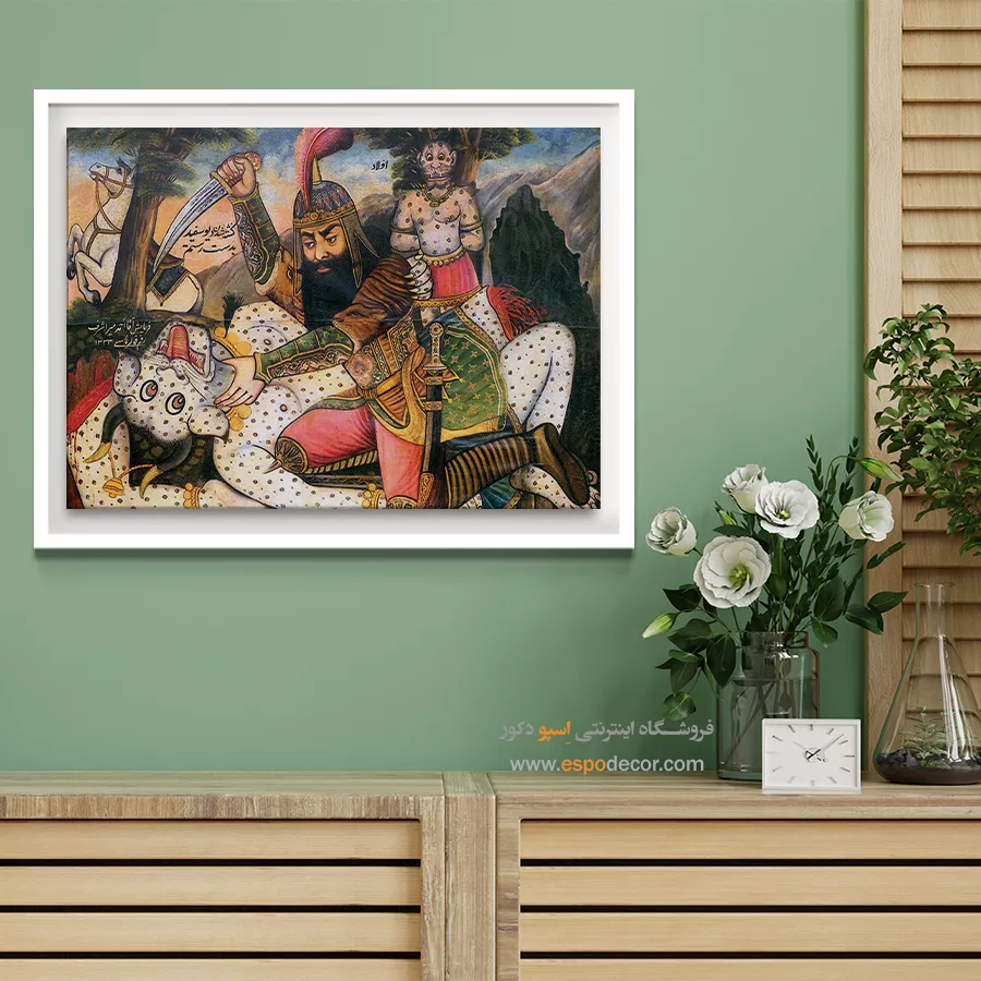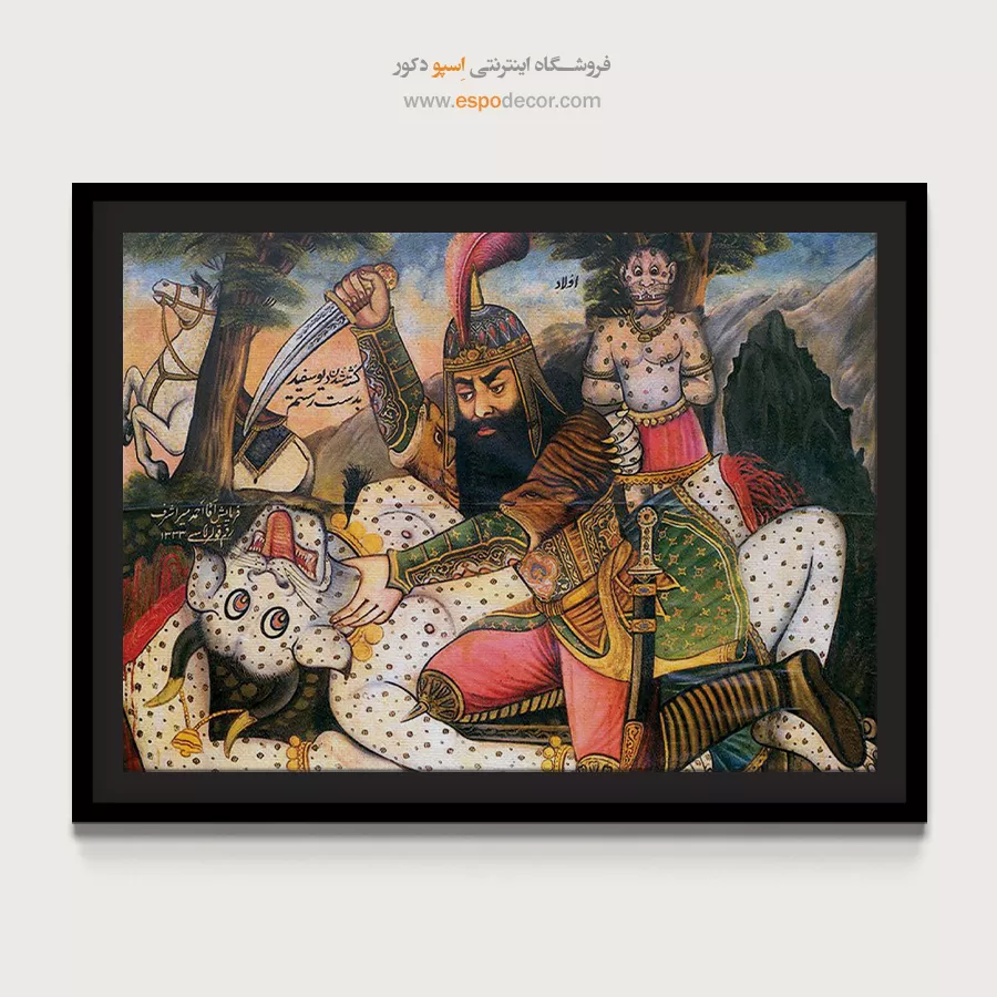 نبرد رستم و دیو سپید – تابلو نقاشی قهوه خانه ای