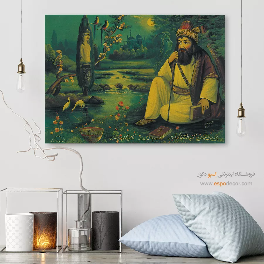 به نشین بر لب جوی و گذر عمر ببین – تابلو نقاشی قهوه خانه ای