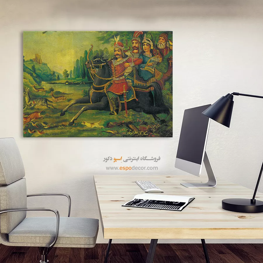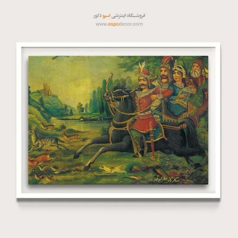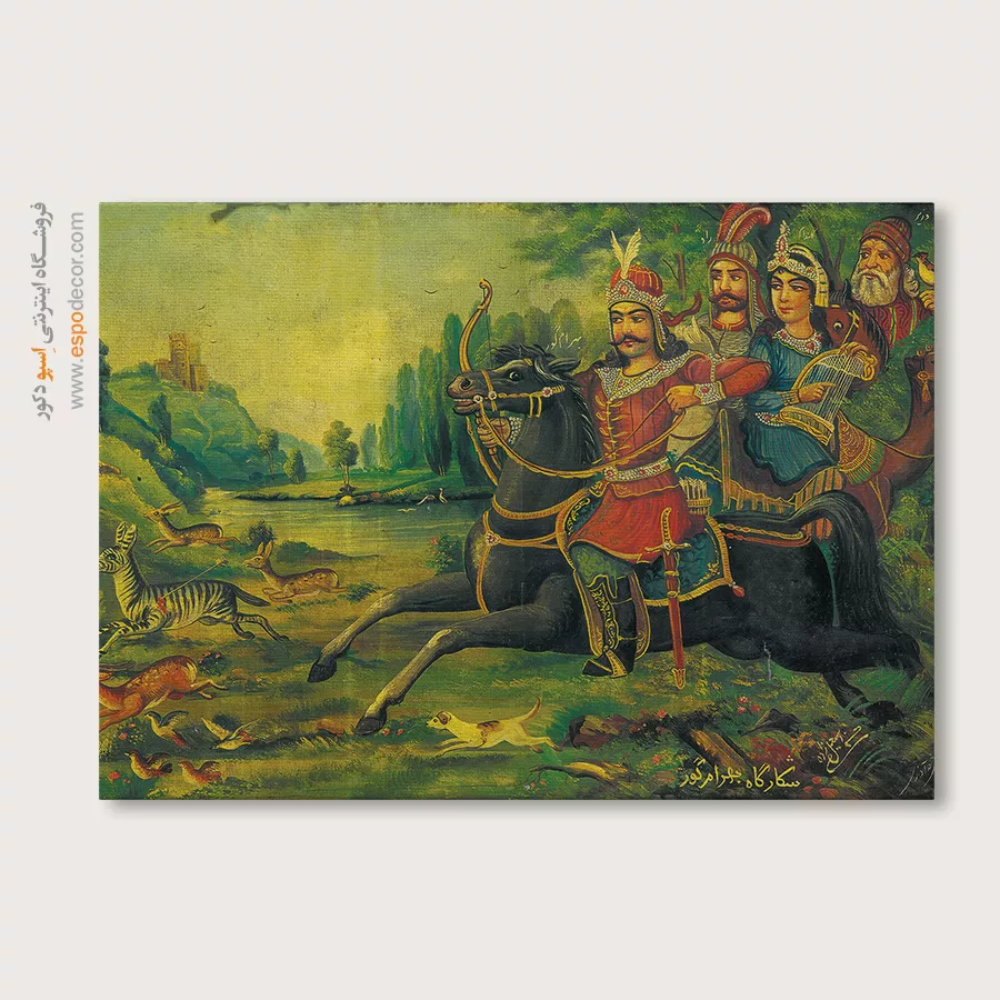 شکارگاه بهرام گور – تابلو نقاشی قهوه خانه ای