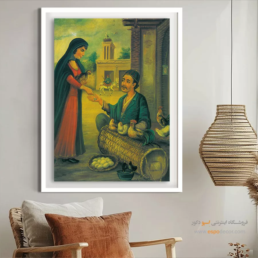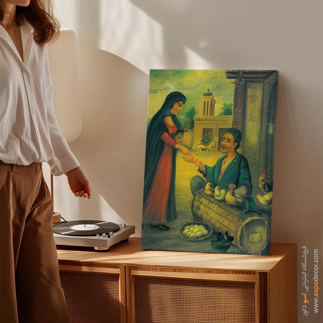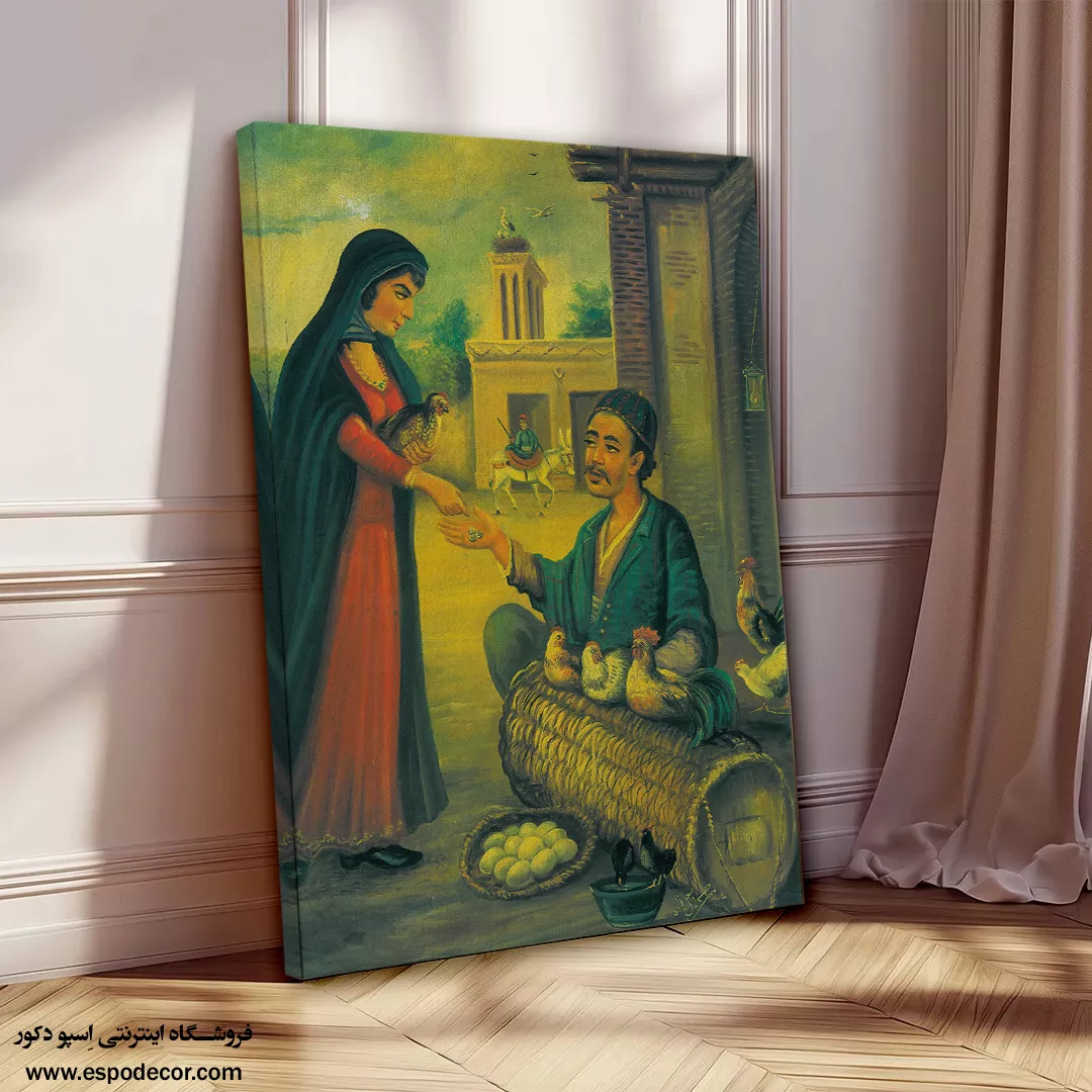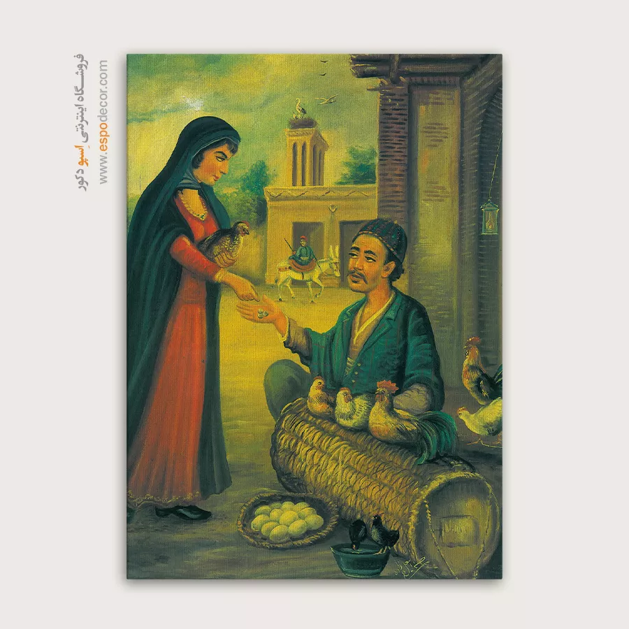 مرد مرغ فروش – تابلو نقاشی قهوه خانه ای