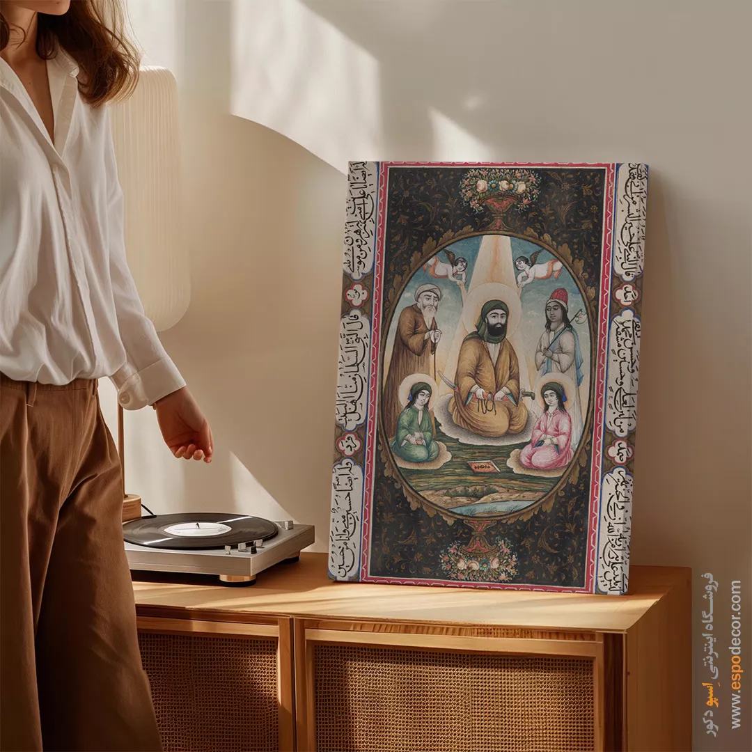 امام علی به همراه حسن و حسین – تابلو نقاشی قهوه خانه ای